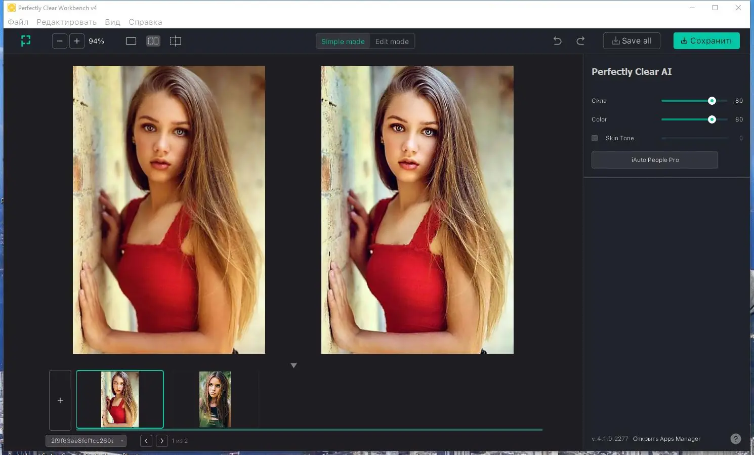 - Поддержка слоев позволяет проводить точечную ретушь без потери качества исходного изображения