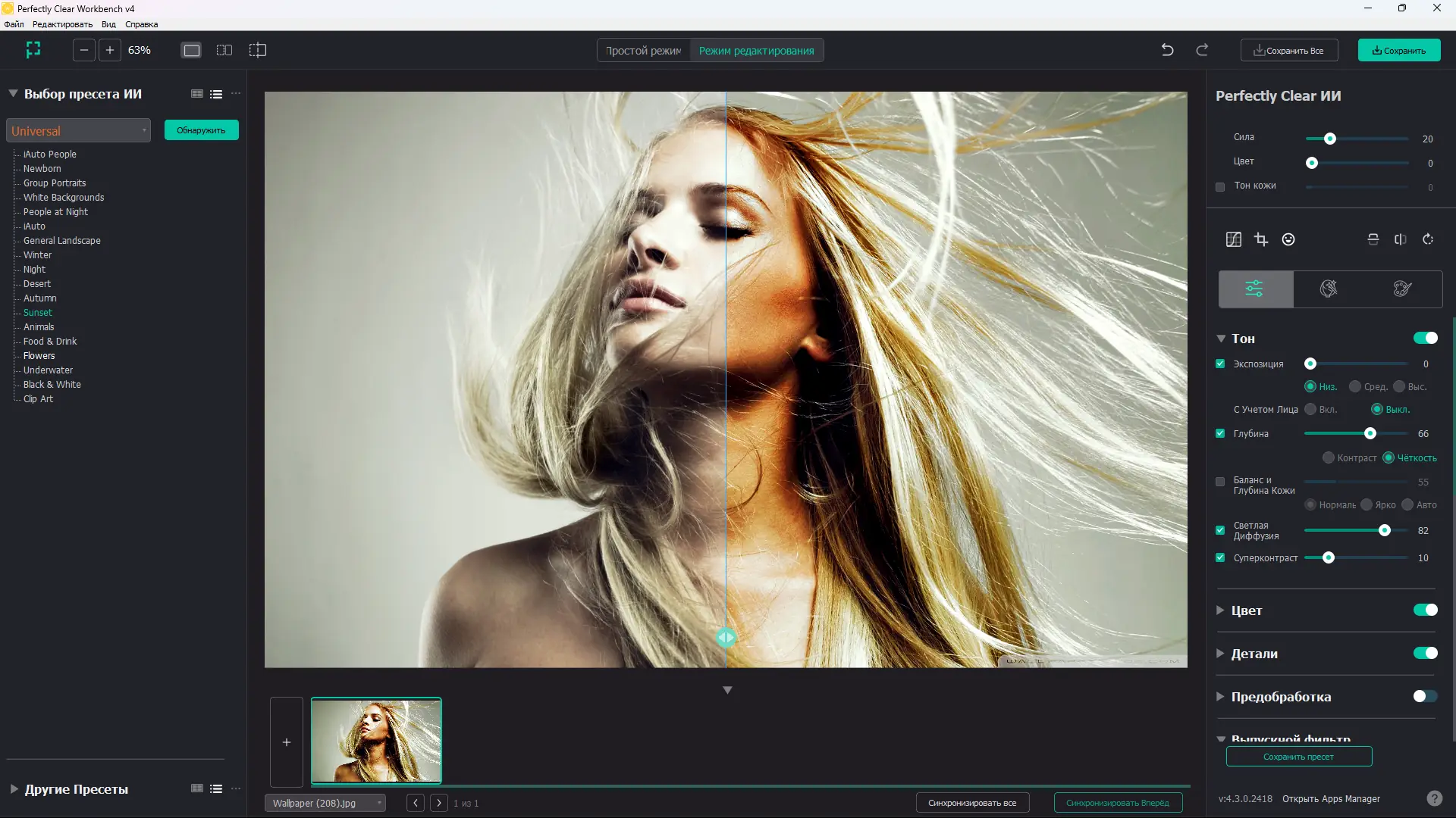 Perfectly Clear сочетает в себе простоту автоматических настроек и гибкость ручного редактирования.