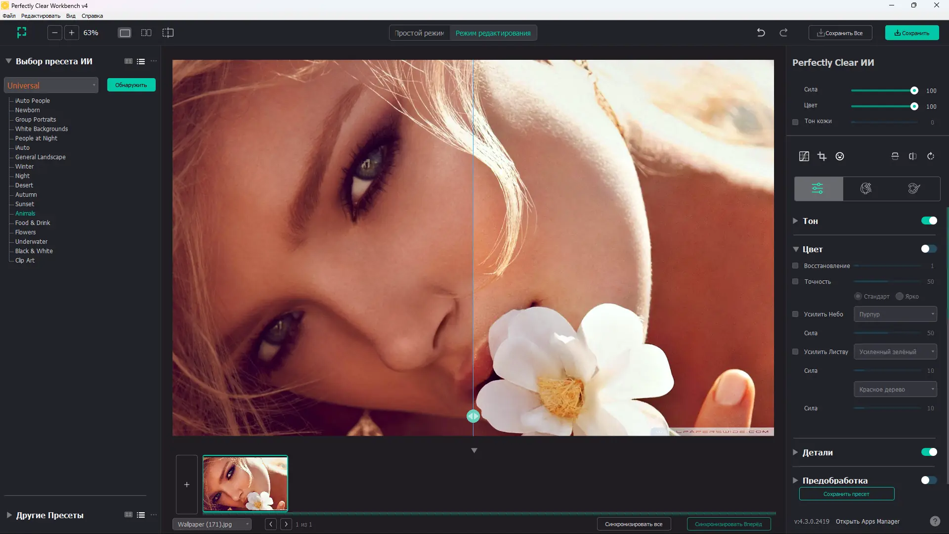 Автоматическая коррекция в Perfectly Clear основана на анализе контекста изображения, что позволяет избежать типичных ошибок, возникающих при глобальном применении фильтров.