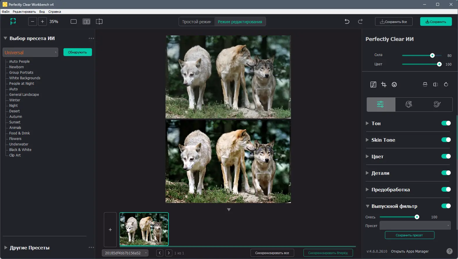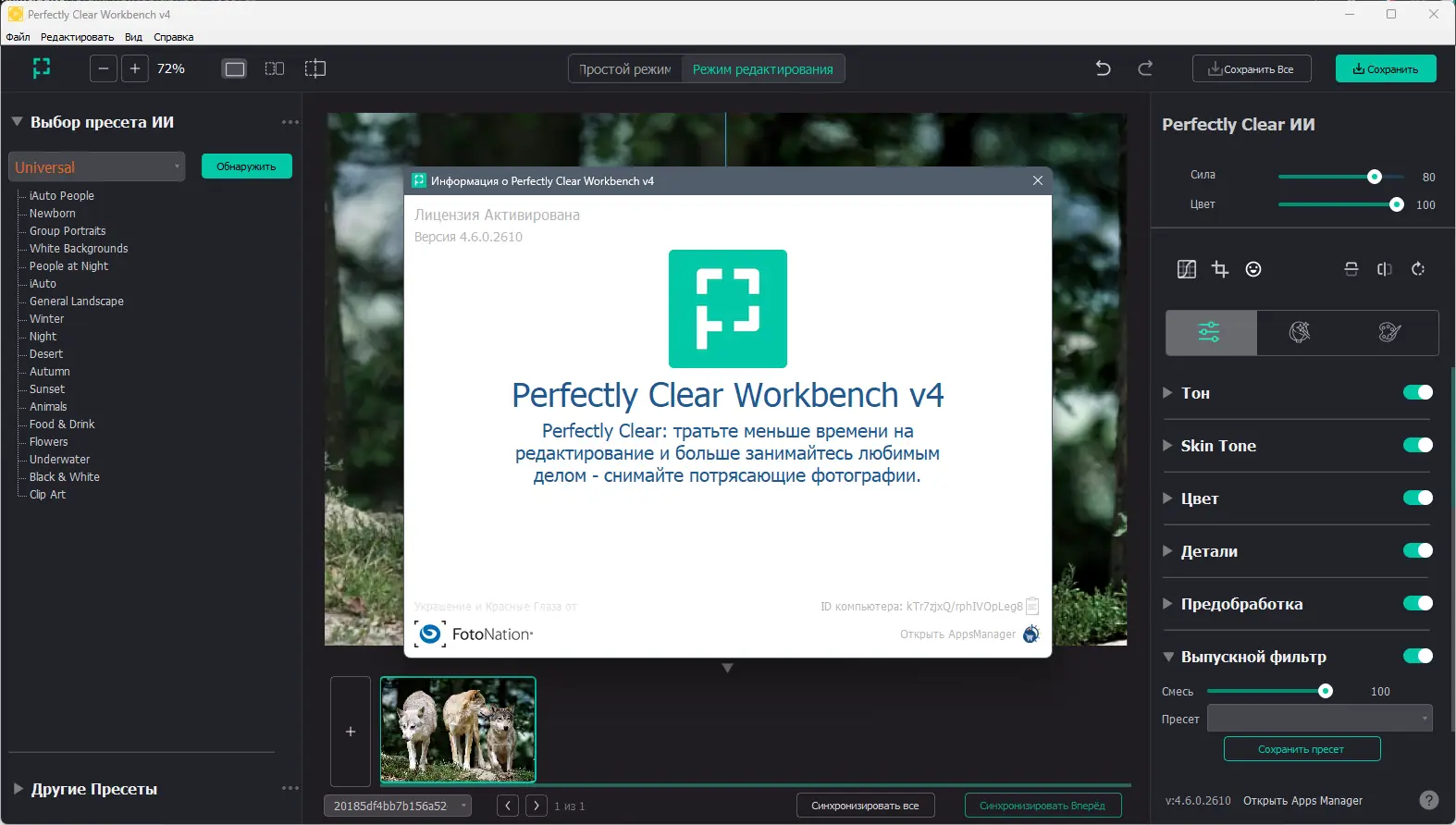 Perfectly Clear — программа для автоматической и ручной коррекции изображений, устраняющая дефекты фото с помощью запатентованных технологий. Приложение эффективно исправляет экспозицию, цветовой баланс, шумы, размытость и другие визуальные недостатки. Подходит как для новичков, так и для профессиональных фотографов, стремящихся к идеальному результату без сложной настройки.