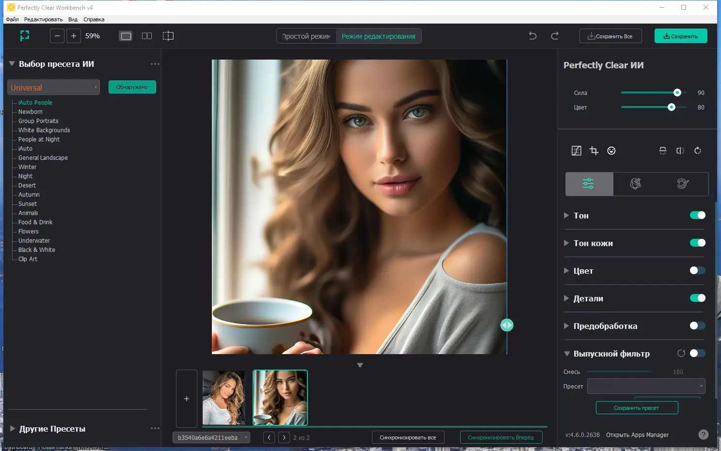 Perfectly Clear WorkBench объединяет в себе гибкость ручной настройки и скорость автоматической обработки, делая ретушь доступной без глубоких знаний графики.