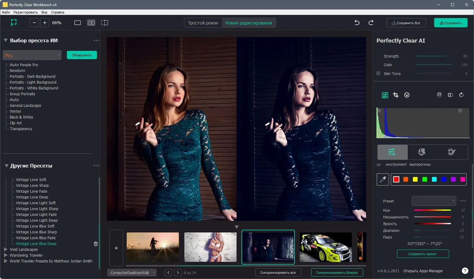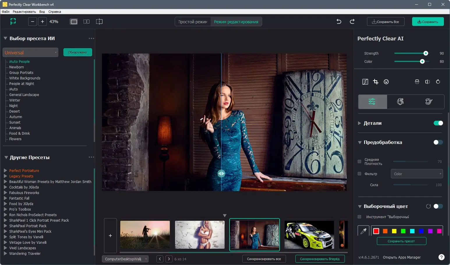 Perfectly Clear представляет собой программное обеспечение, ориентированное на улучшение качества изображений без необходимости глубоких знаний в области фотообработки. Основой работы приложения стала технология, разработанная в результате десятилетних исследований и включающая более десятка запатентованных алгоритмов коррекции. Программа устраняет такие артефакты, как засветка, недостаточная насыщенность, шумы, эффект «красных глаз» и неестественный тон кожи, возвращая снимкам выразительность и реалистичность. Благодаря интуитивному интерфейсу и широкому набору функций, обработка изображений становится быстрой и точной.