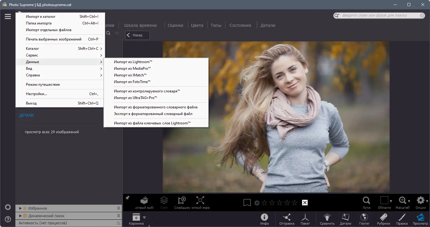 Photo Supreme — это мощный инструмент для организации, каталогизации и обработки цифровых изображений, разработанный для фотографов и коллекционеров визуального контента. Программа обеспечивает комплексный подход к управлению медиафайлами, поддерживает широкий спектр форматов, включая RAW, и предлагает расширенные функции поиска, редактирования и публикации. Благодаря интуитивному интерфейсу и высокой производительности, она подходит как для любителей, так и для профессионалов.