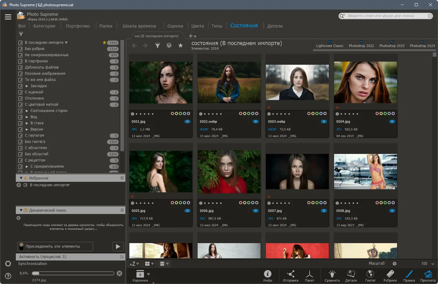 Photo Supreme представляет собой комплексное программное решение для эффективной организации фотобиблиотек. Основная задача приложения — упростить процесс импорта, классификации и поиска изображений, особенно в условиях большого объёма данных. Программа автоматически считывает метаданные, распознаёт дубликаты и позволяет создавать пользовательские поля для детальной настройки описания файлов.
