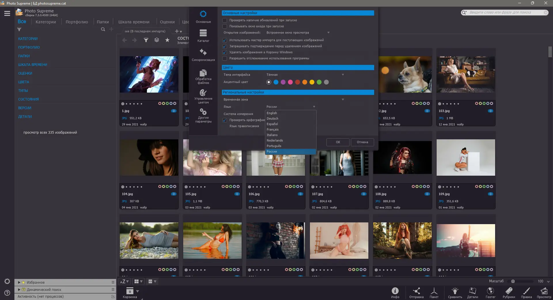 Photo Supreme оптимизирована для работы с большими коллекциями, сохраняя высокую скорость отклика даже при десятках тысяч файлов.