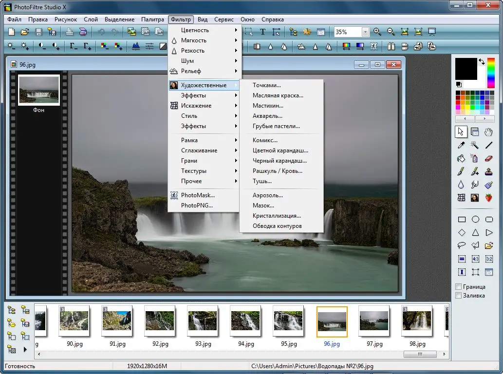 PhotoFiltre — универсальный графический редактор, предназначенный для обработки изображений с минимальными временными затратами. Программа сочетает в себе простой интерфейс и широкие возможности для ретуши, цветокоррекции и применения художественных эффектов. Подходит как для начинающих пользователей, так и для тех, кто ищет альтернативу более сложным инструментам вроде Adobe Photoshop.