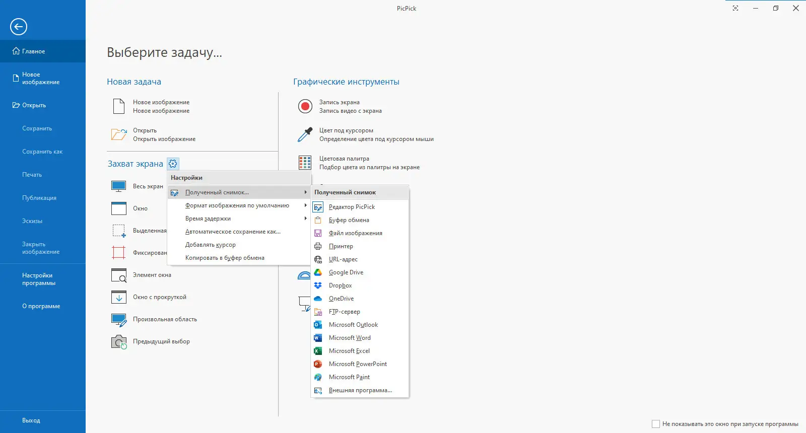 PicPick предоставляет широкие возможности для создания и обработки изображений непосредственно с рабочего стола. Программа поддерживает множество режимов захвата: полный экран, активное окно, выделенная область, фиксированный размер, свободная форма и скроллинг страниц в браузере. Каждый из режимов адаптирован под конкретные сценарии использования, включая создание инструкций, отчетов или визуальных комментариев. Интерфейс остаётся понятным даже при большом количестве функций.