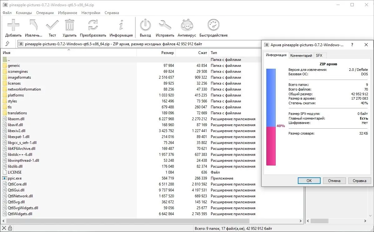 Программа доступна в виде портативной версии от разработчика, что гарантирует отсутствие вредоносного ПО и высокую степень сжатия архивов. Доступны сборки для различных версий Qt, включая qt5.15 и qt6.5, что позволяет выбрать оптимальный вариант в зависимости от системы. Контрольные суммы CRC32, MD5 и SHA-1 предоставляются для проверки целостности загруженных файлов. Распространение осуществляется в заархивированном виде, что минимизирует размер дистрибутива и ускоряет передачу. Версия 0.7.2 стабильна и подходит для повседневного использования.
