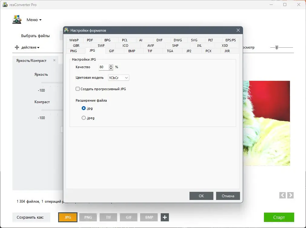 - Гибкие настройки цветовой модели, разрешения, DPI и прозрачности