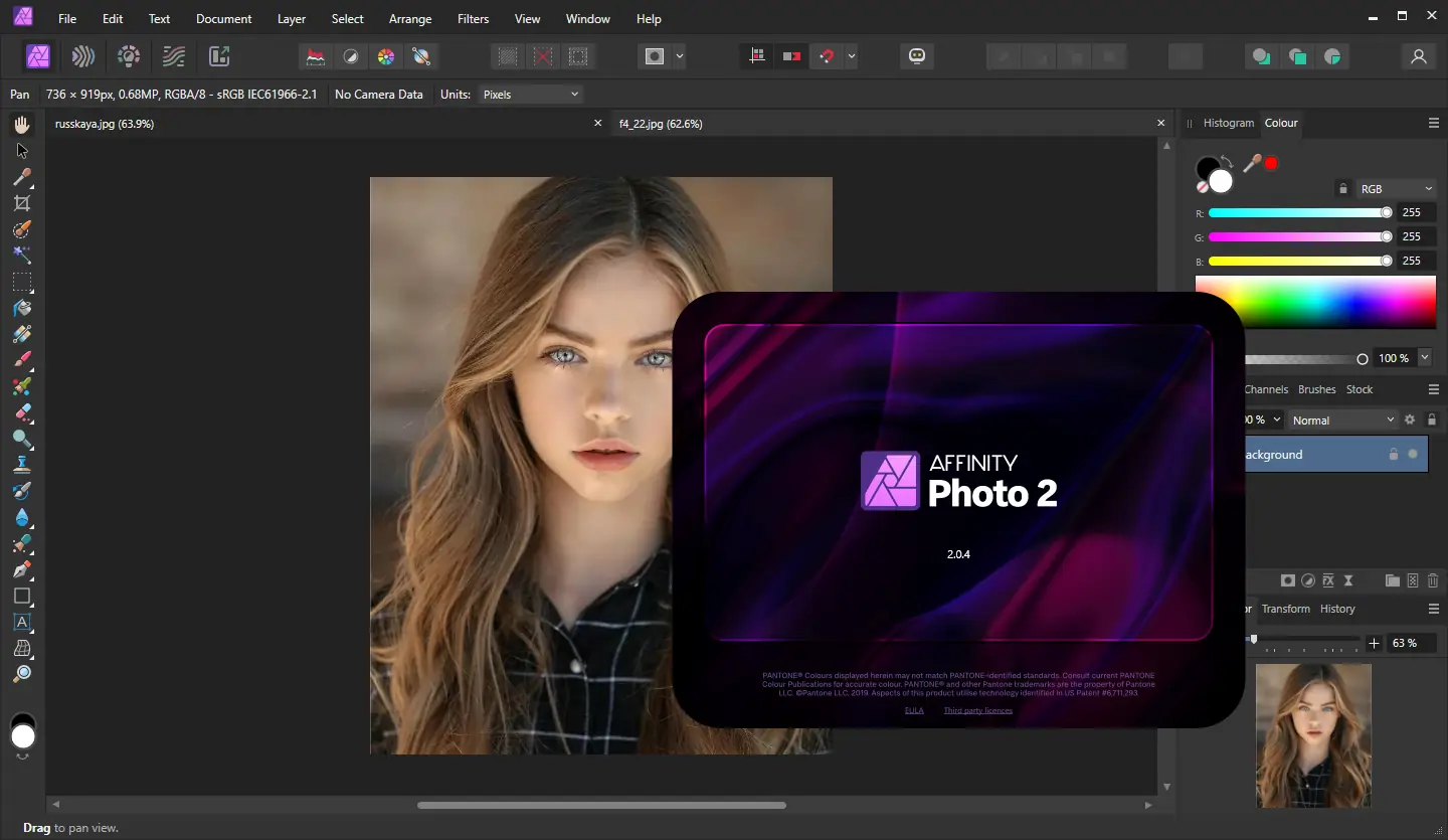 Использование программы начинается с выбора подходящей «Персоны» в зависимости от задачи. Режим Photo используется для стандартного редактирования и многослойной компоновки, тогда как Develop предназначен для тонкой настройки RAW-снимков. Инструменты ретуши, такие как clone, dodge и burn, интегрированы в персону Liquify, где можно выполнять пластические изменения с высокой точностью. Экспорт проектов настраивается в одноимённом режиме, где доступна нарезка по областям, выбор формата и параметров сжатия.