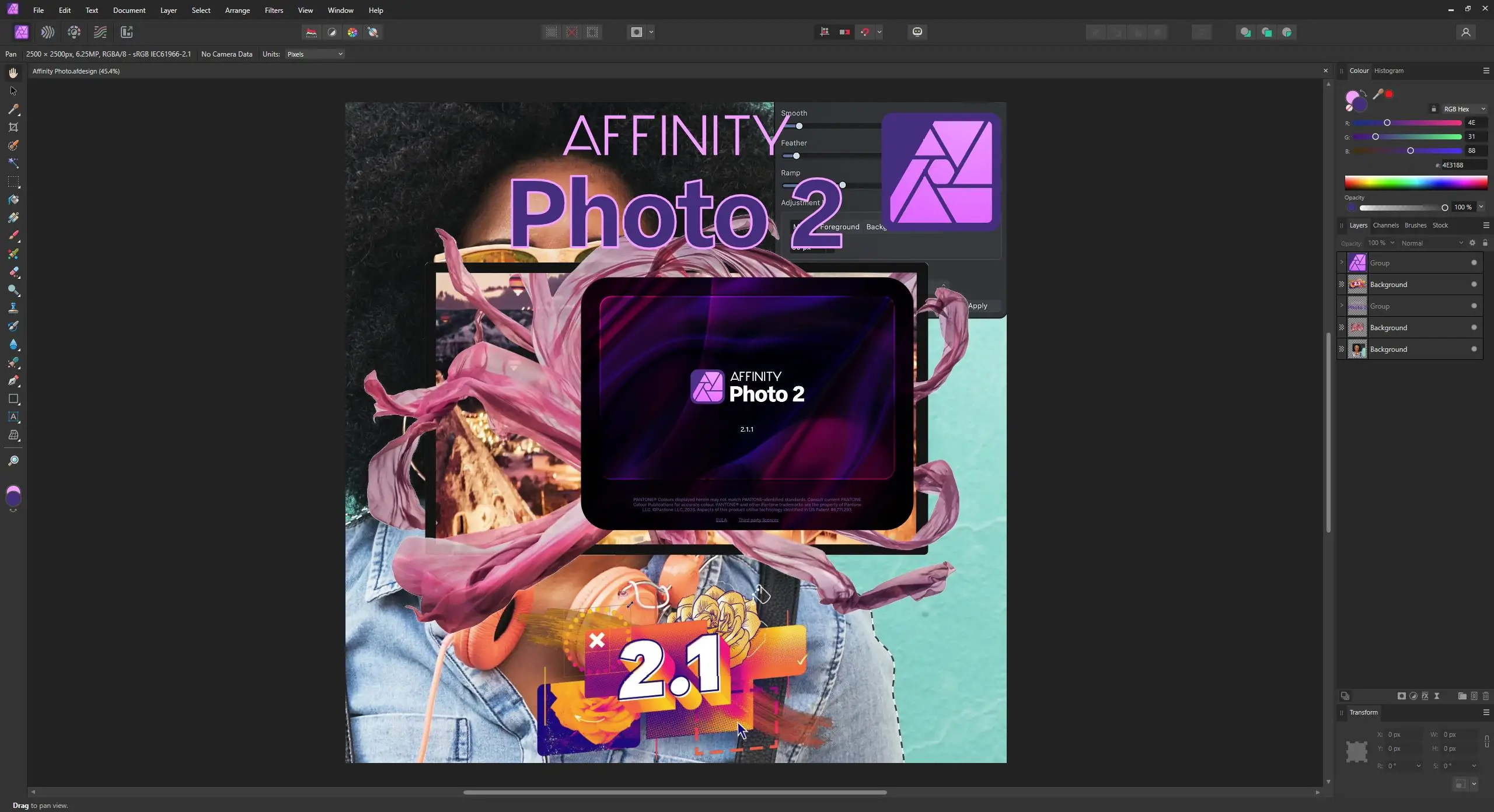 - Интеграция векторных слоёв из Affinity Designer, позволяющая комбинировать растровую и векторную графику в одном проекте.