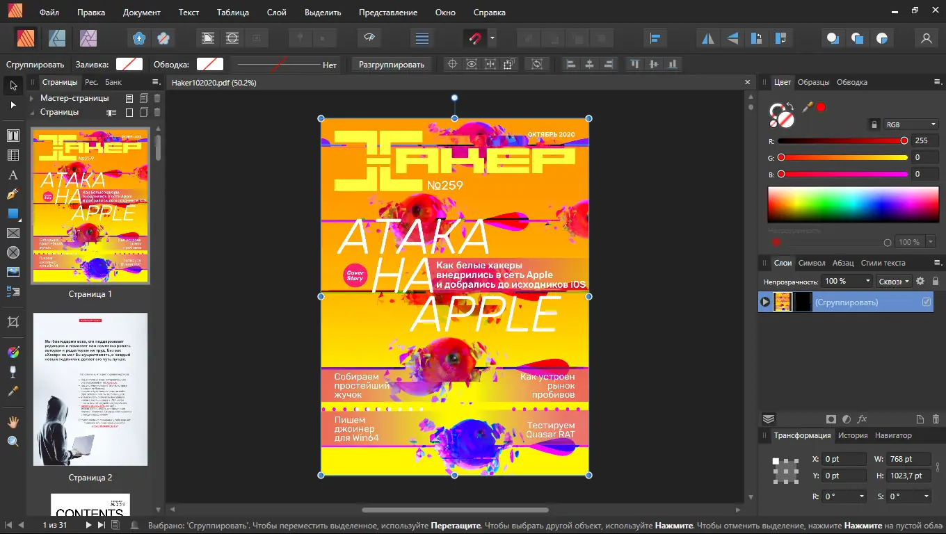 Воплотите свое видение в жизнь с помощью Affinity Publisher — мощного программного обеспечения для создания профессиональных макетов. Программа сочетает высокую производительность, продвинутые инструменты типографики и точный контроль над цветом, позволяя работать с проектами любой сложности: от брошюр и журналов до отчетов и плакатов. Ее интуитивный интерфейс и стабильность делают процесс дизайна максимально комфортным.