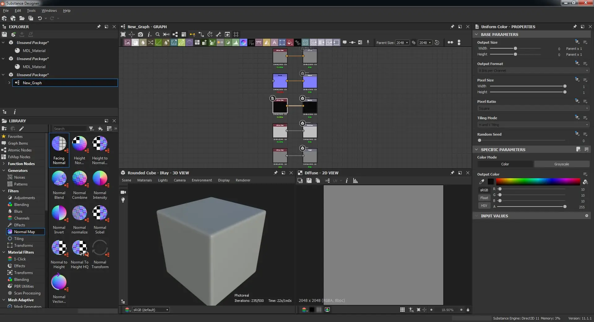 Substance Designer — это среда для создания процедурных текстур и материалов, которая предлагает художникам и дизайнерам уникальные возможности для творчества. В отличие от растровых редакторов, здесь каждый элемент строится на основе графа узлов, что обеспечивает полную обратимость и масштабируемость. Это особенно ценно при работе с 3D-моделями, где требуется высокая детализация и адаптация под различные разрешения.