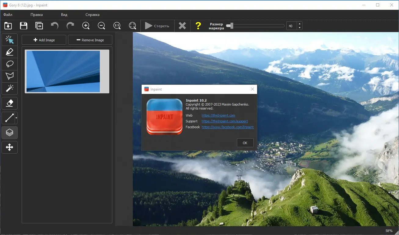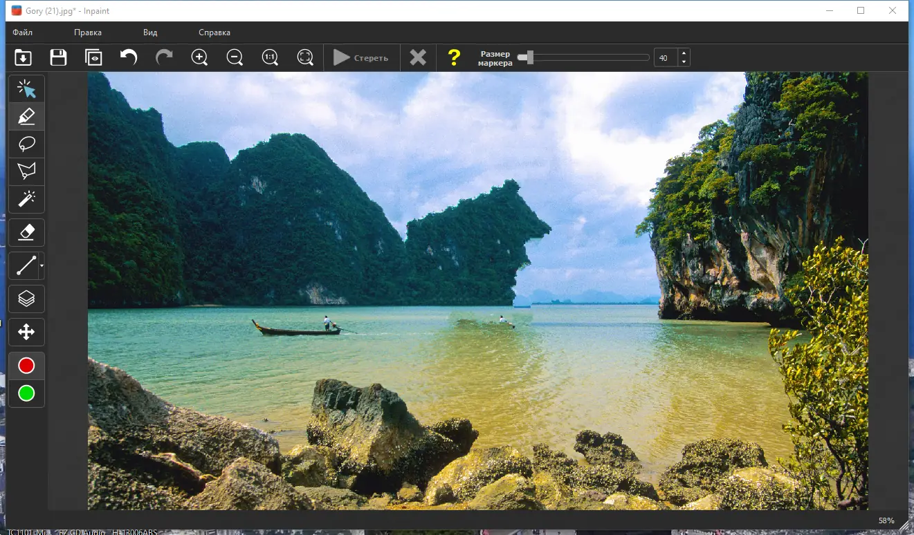 Teorex Inpaint — программа для точного удаления нежелательных элементов с изображений, автоматически воссоздающая фон на основе окружающих пикселей. Она подходит для редактирования фотографий без использования сложных инструментов фотошопа. Простой интерфейс и высокая точность делают обработку изображений быстрой и интуитивной.