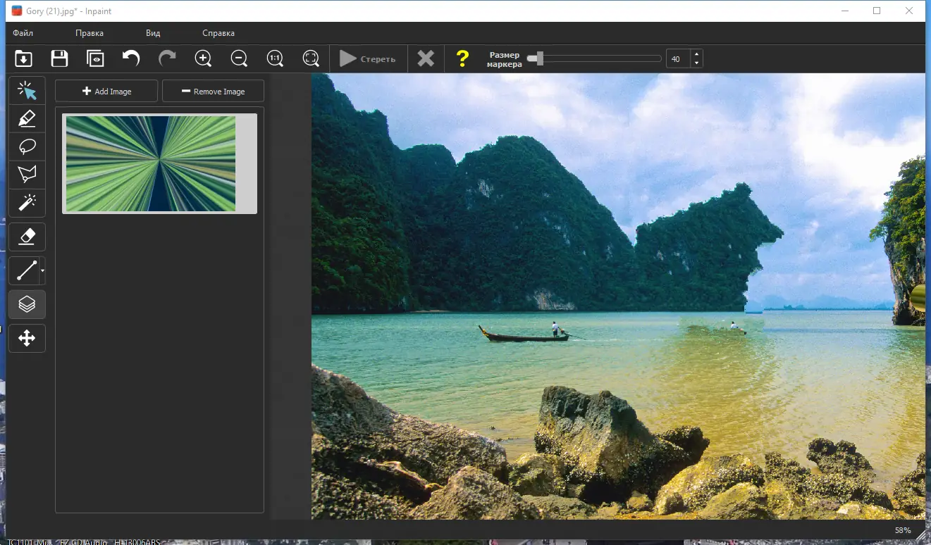 Teorex Inpaint использует алгоритмы анализа текстуры, чтобы естественно заполнить выделенную область, имитируя структуру рядом расположенных пикселей.
