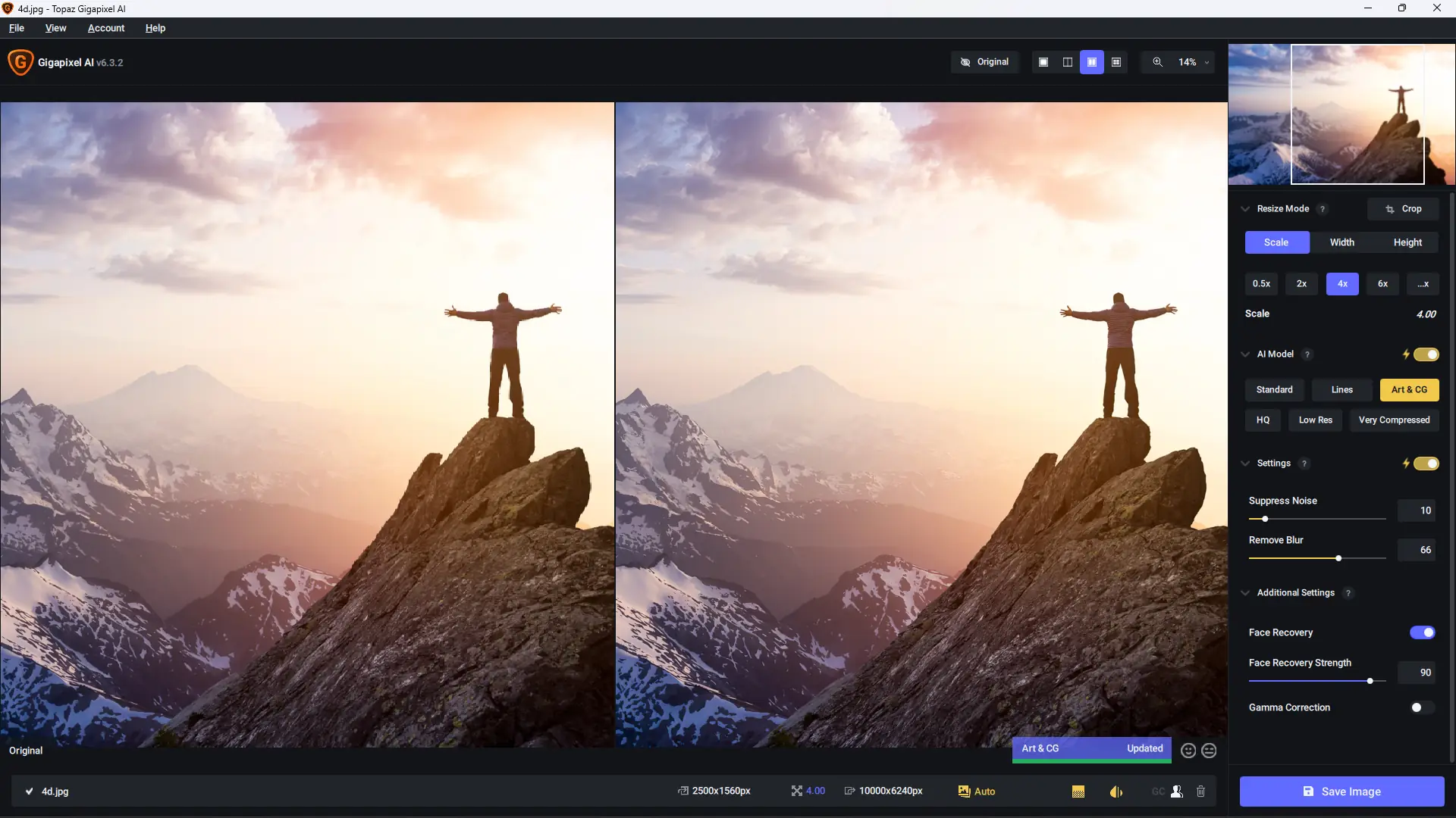 Работа с программой интуитивно понятна и не требует глубоких технических знаний. После запуска приложения достаточно загрузить изображение, выбрать нужный коэффициент увеличения и тип обработки — например, для портретов, архитектуры или общего использования. Программа автоматически применяет оптимальные настройки на основе выбранной модели. После предварительного просмотра результатов можно запустить полную обработку. Поддержка плагина позволяет использовать Gigapixel напрямую из Photoshop, что упрощает рабочий процесс для профессиональных ретушеров и фотографов.