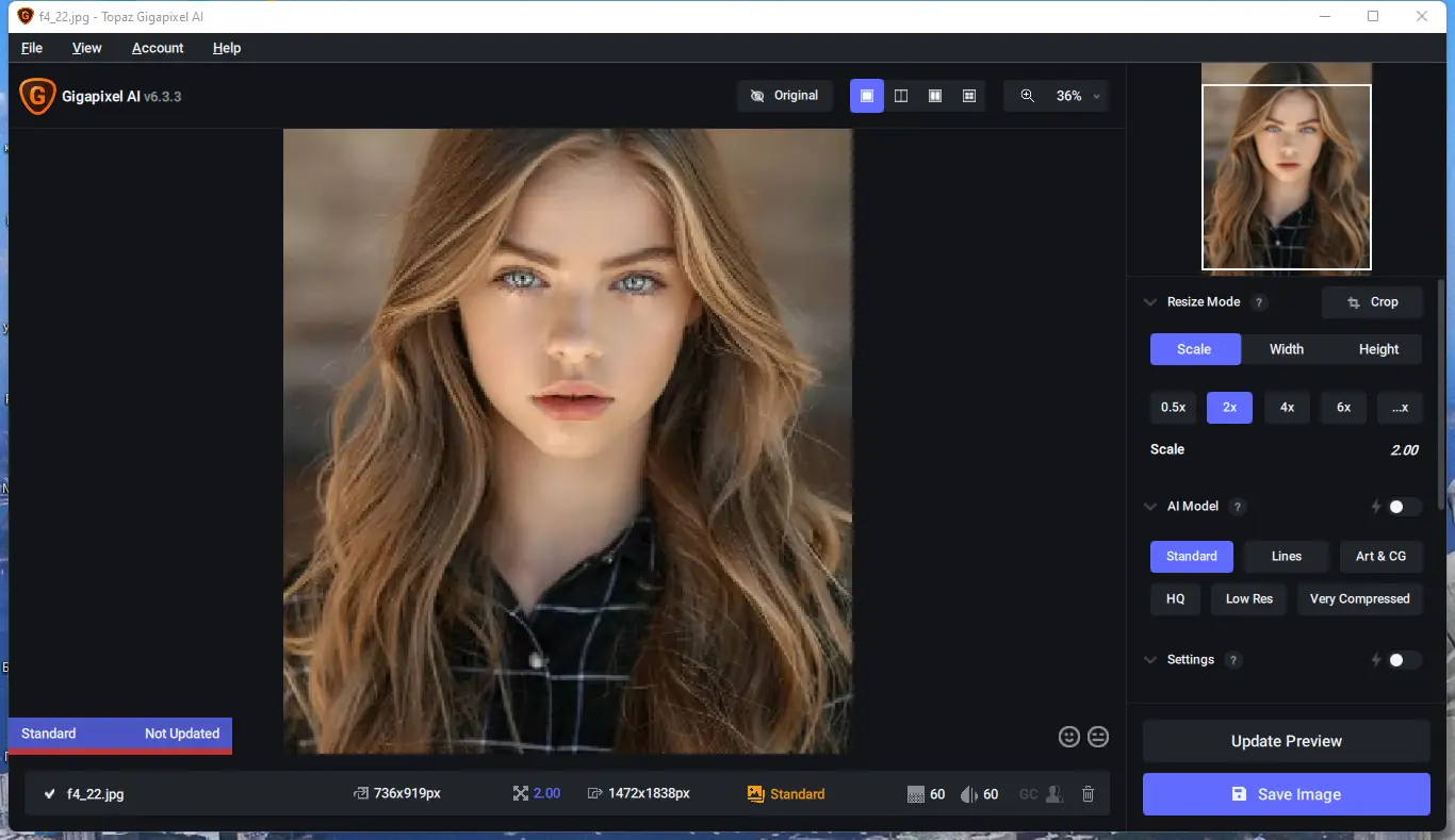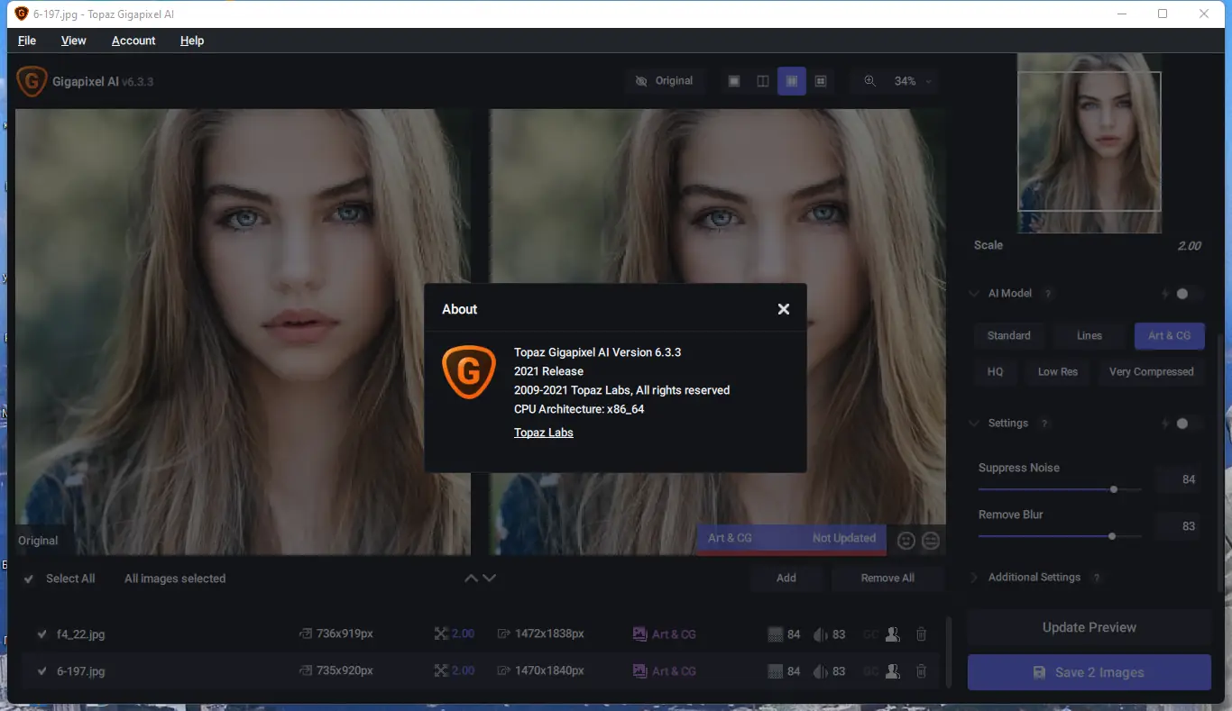 Topaz Gigapixel AI — программное обеспечение для увеличения изображений с использованием технологий искусственного интеллекта. Оно позволяет масштабировать фотографии до 600%, восстанавливая утерянные детали и сохраняя естественную четкость. Благодаря глубокому обучению, приложение превосходит традиционные методы интерполяции, обеспечивая реалистичные и высококачественные результаты.