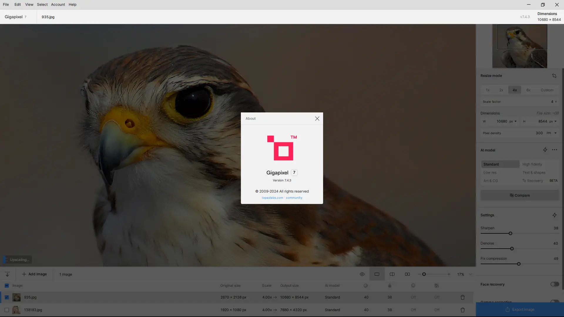 Topaz Gigapixel AI — программное обеспечение на базе искусственного интеллекта, предназначенное для увеличения разрешения изображений с сохранением и восстановлением мелких деталей. Благодаря глубокому обучению и нейронным сетям, приложение способно повышать качество фото, добавляя фотореалистичные текстуры и устраняя артефакты сжатия. Решение подходит как для профессиональных фотографов, так и для дизайнеров, работающих с графикой.