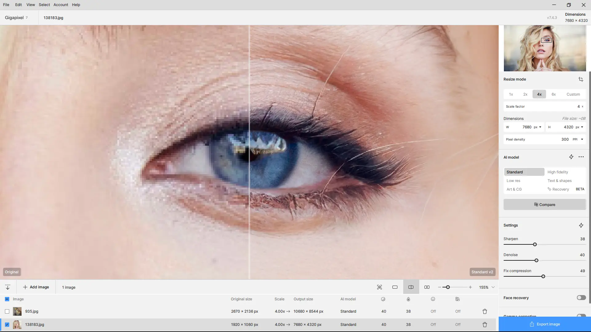Topaz Gigapixel AI предлагает значительное улучшение качества изображений по сравнению с классическими методами апскейлинга. Особенно выделяется его способность к реконструкции деталей, которые физически отсутствовали в исходнике. Это достигается за счёт специализированных моделей ИИ, адаптированных под разные типы контента. Хотя обработка требует определённых вычислительных ресурсов, результат оправдывает ожидания даже в сложных случаях. Версия 7 демонстрирует стабильную работу и улучшенную оптимизацию, включая интеграцию с внешними настройками и поддержку портативного запуска.