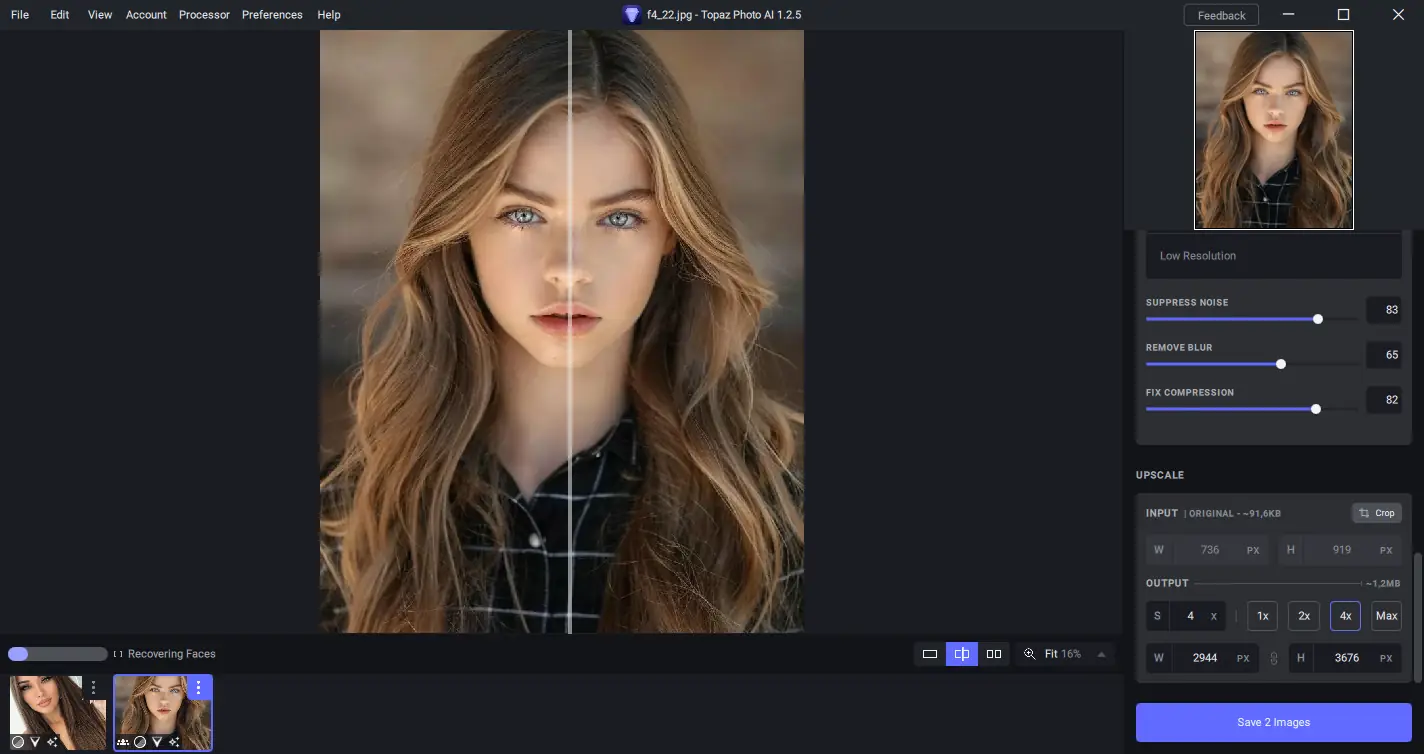 Интерфейс программы интуитивно понятен и ориентирован на быстрое выполнение задач. Пользователь загружает изображение, после чего активируется режим Autopilot, который анализирует фото и предлагает оптимальные настройки. При необходимости можно вручную регулировать уровень шумоподавления, резкости и масштабирования. После предварительного просмотра результатов выполняется экспорт файла в выбранном формате. Программа поддерживает пакетную обработку, что особенно полезно при работе с большим количеством снимков.