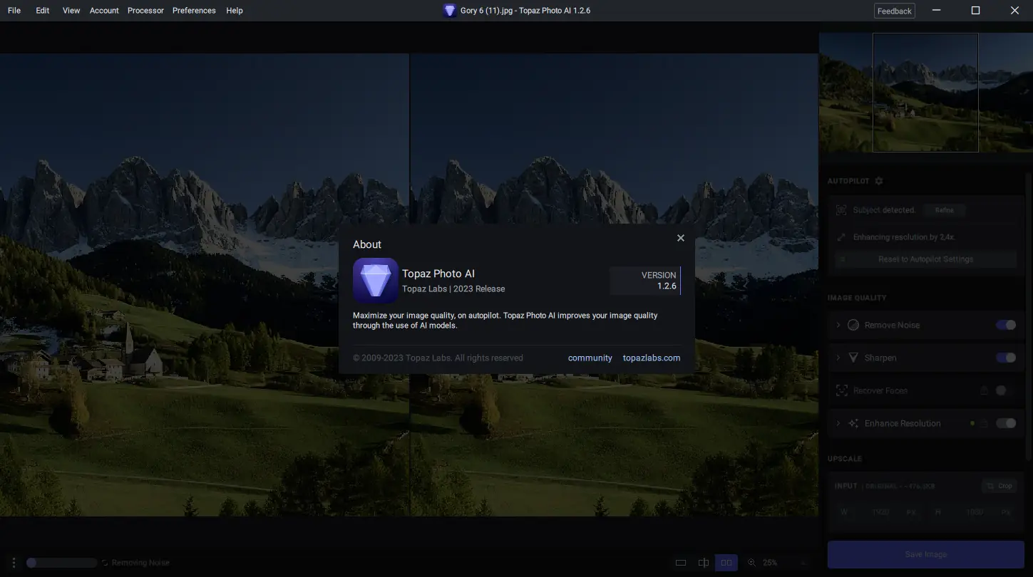 Topaz Photo AI — это программное обеспечение для автоматической обработки изображений с использованием технологий искусственного интеллекта, предназначенное для устранения шумов, коррекции размытости и увеличения разрешения фотографий без потери качества. Инструмент объединяет в себе передовые алгоритмы обработки, обеспечивая высокую точность и естественность результатов. Подходит как для профессиональных фотографов, так и для любителей, стремящихся улучшить визуальную составляющую своих снимков.