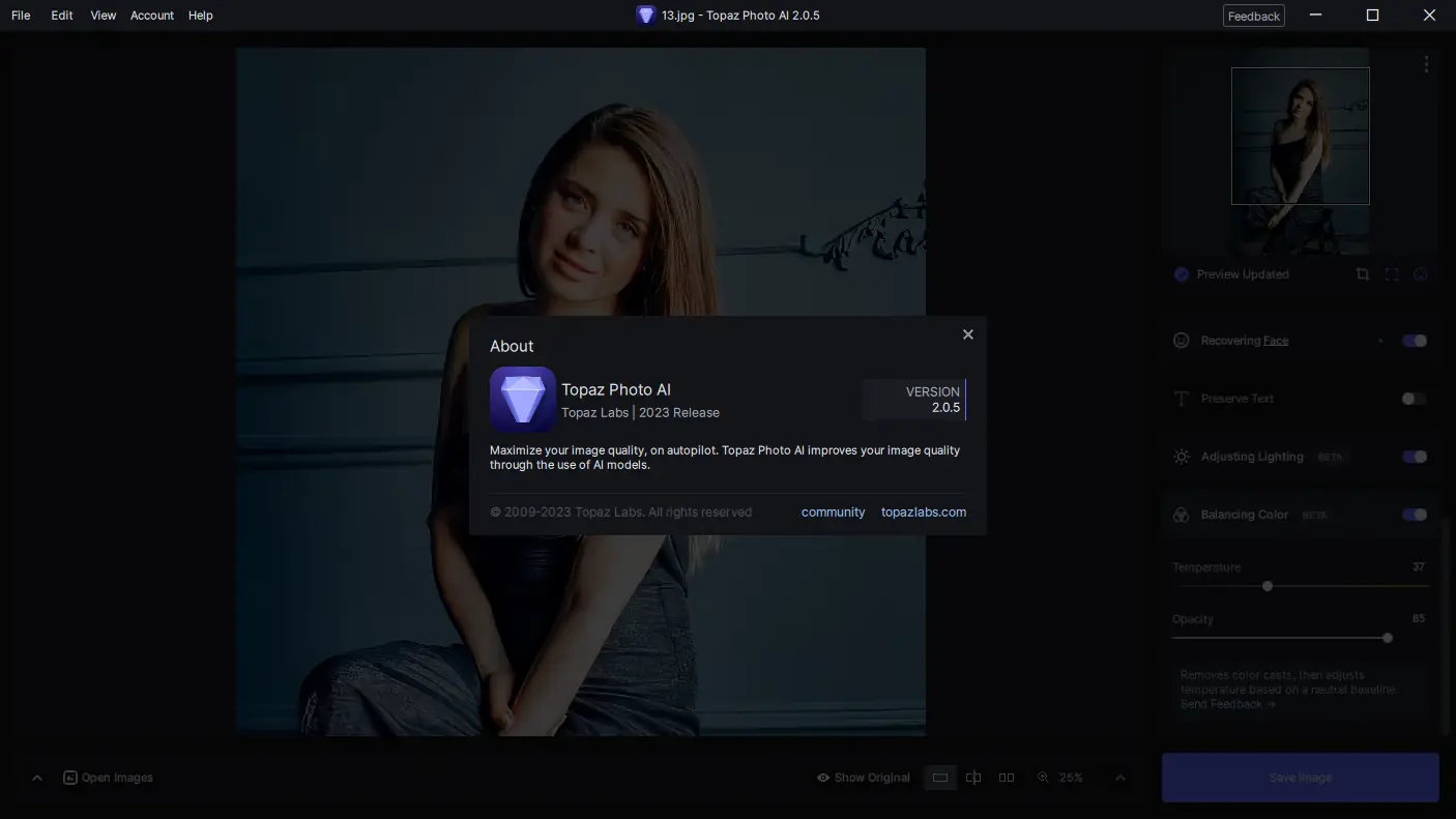 Topaz Photo AI — это современный редактор изображений, использующий технологии искусственного интеллекта для улучшения качества фотографий. Программа объединяет функции устранения шума, повышения резкости и увеличения разрешения, обеспечивая профессиональный результат без необходимости ручной настройки. Подходит как для новичков, так и для опытных фотографов, стремящихся оптимизировать процесс обработки.