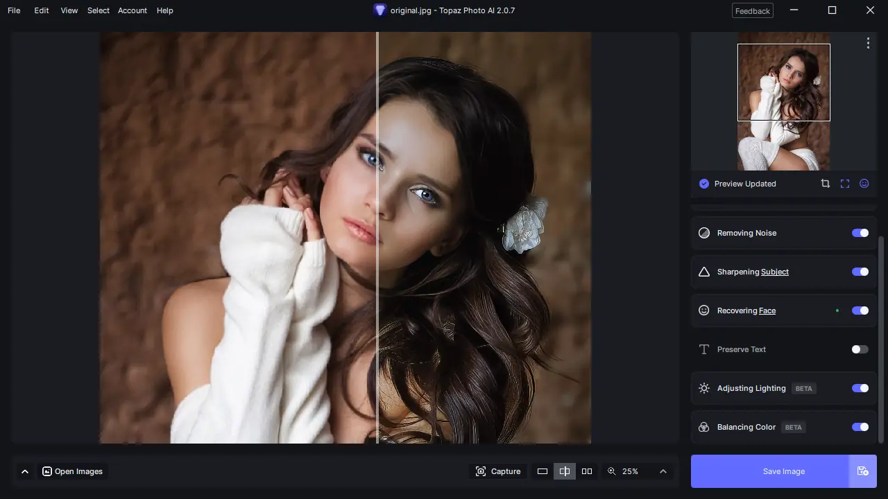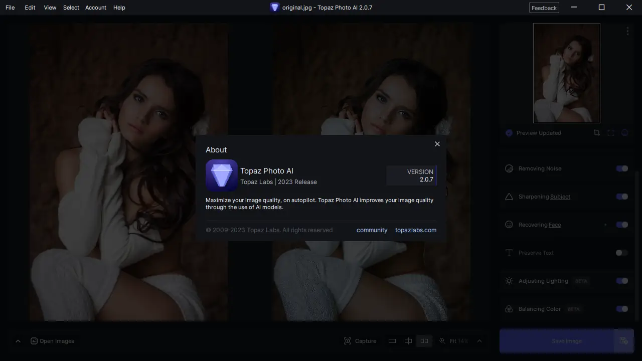 Topaz Photo AI представляет собой комплексное решение для цифровой обработки изображений, ориентированное на фотографов и редакторов, которым важно сохранить максимальную детализацию при коррекции снимков. Программа использует нейросетевые модели для анализа и улучшения фотографий, адаптируясь под тип искажений — будь то размытость из-за дрожания камеры или шум при съёмке в условиях низкой освещённости. Благодаря встроенному искусственному интеллекту, приложение способно распознавать объекты, лица и текстуры, подбирая оптимальные параметры коррекции.