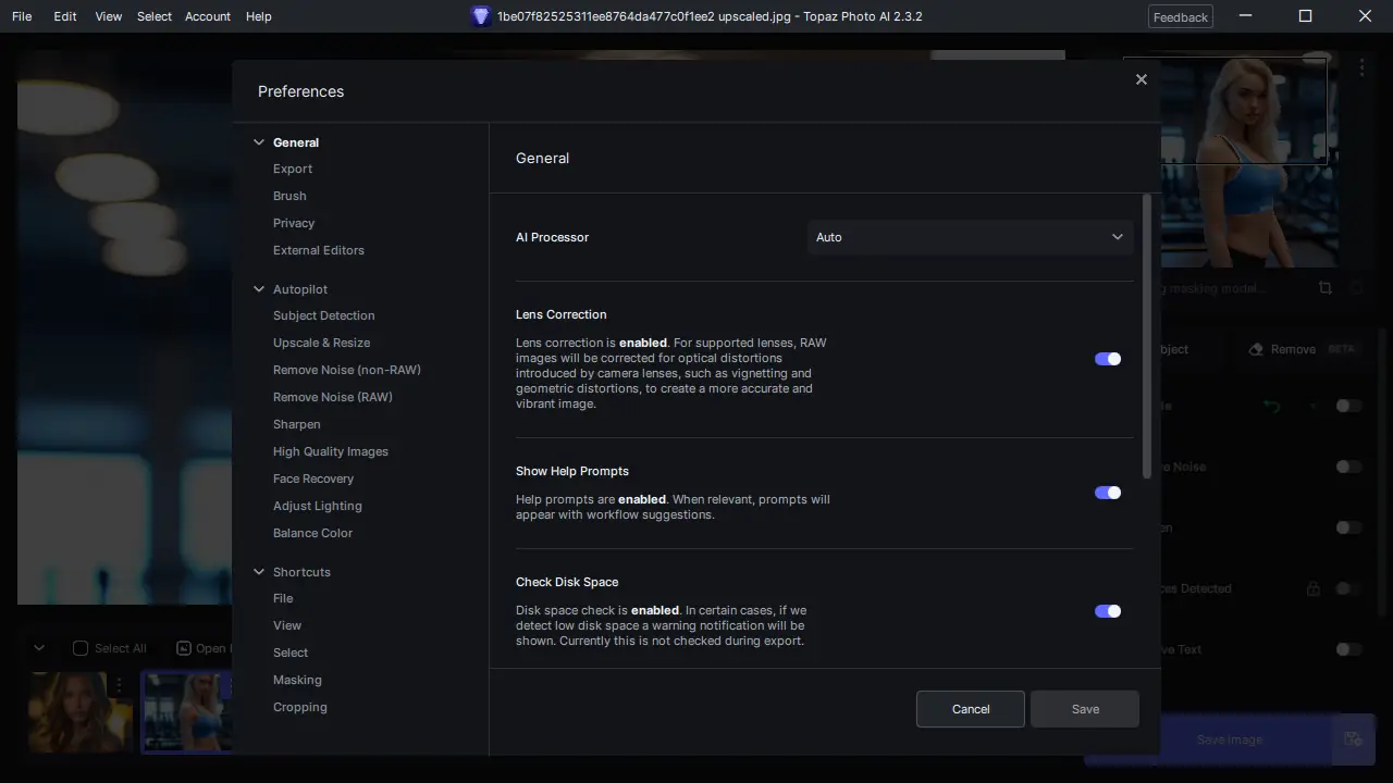 Работа с приложением начинается с импорта изображения через интерфейс или перетаскиванием файла. После загрузки программа запускает анализ, предлагая автоматические коррекции или позволяя вручную регулировать уровень шумоподавления, резкости и масштабирования. Пользователь может переключаться между режимами просмотра до и после, чтобы оценить визуальные изменения. Для интеграции в рабочий процесс доступна установка плагина, который добавляет Topaz Photo AI в меню Photoshop. Экспорт результатов поддерживается в форматах JPEG и PNG с настройкой качества и цветового профиля.