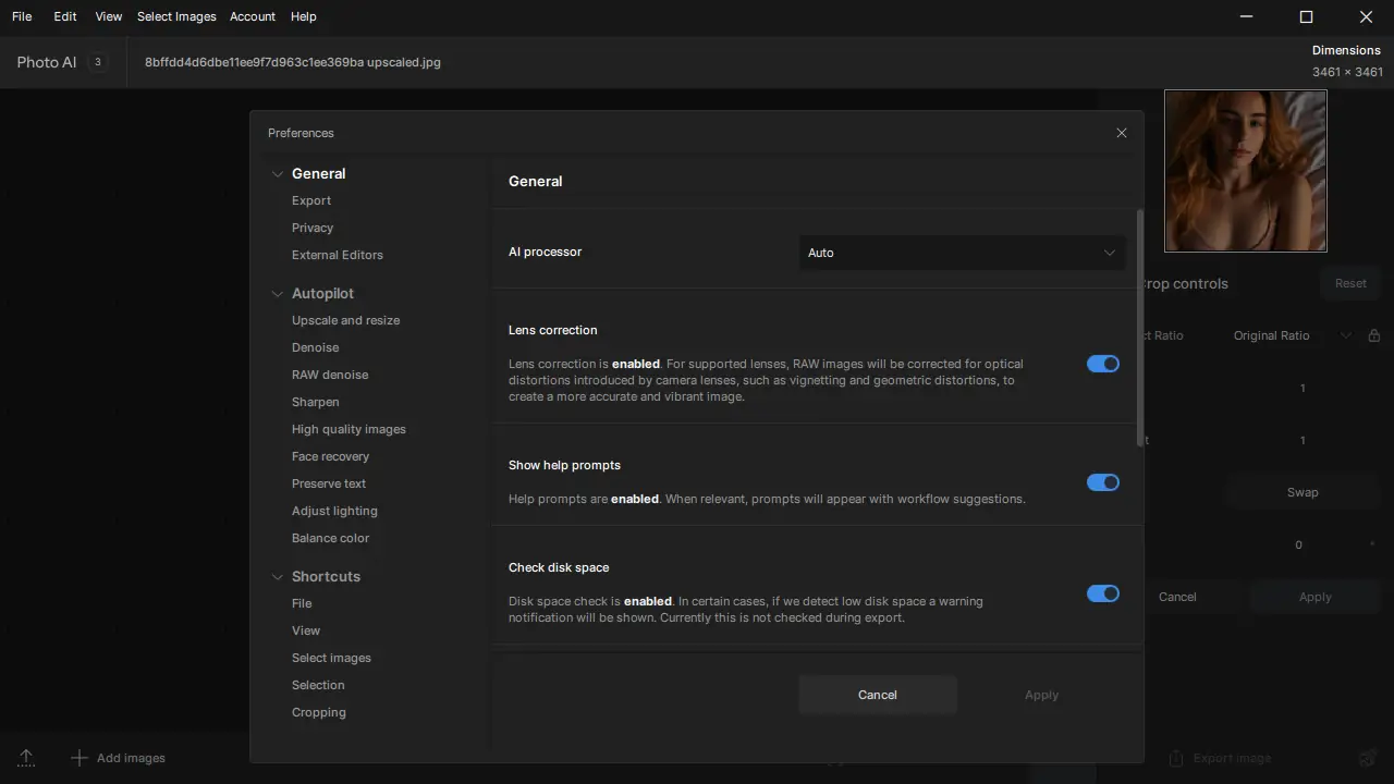 Использование программы начинается с загрузки изображения через интерфейс перетаскивания или стандартный диалог выбора файлов. После этого активируется анализ в режиме реального времени, в ходе которого система определяет наличие шума, размытости или необходимости масштабирования. Пользователь может выбрать автоматический режим Autopilot или вручную настроить параметры шумоподавления, резкости и увеличения. Для RAW-изображений доступны дополнительные регулировки цветового баланса и экспозиции, что делает приложение универсальным решением на начальном этапе редактирования. Готовые снимки экспортируются с сохранением настроек именования, а также порядка применённых улучшений.
