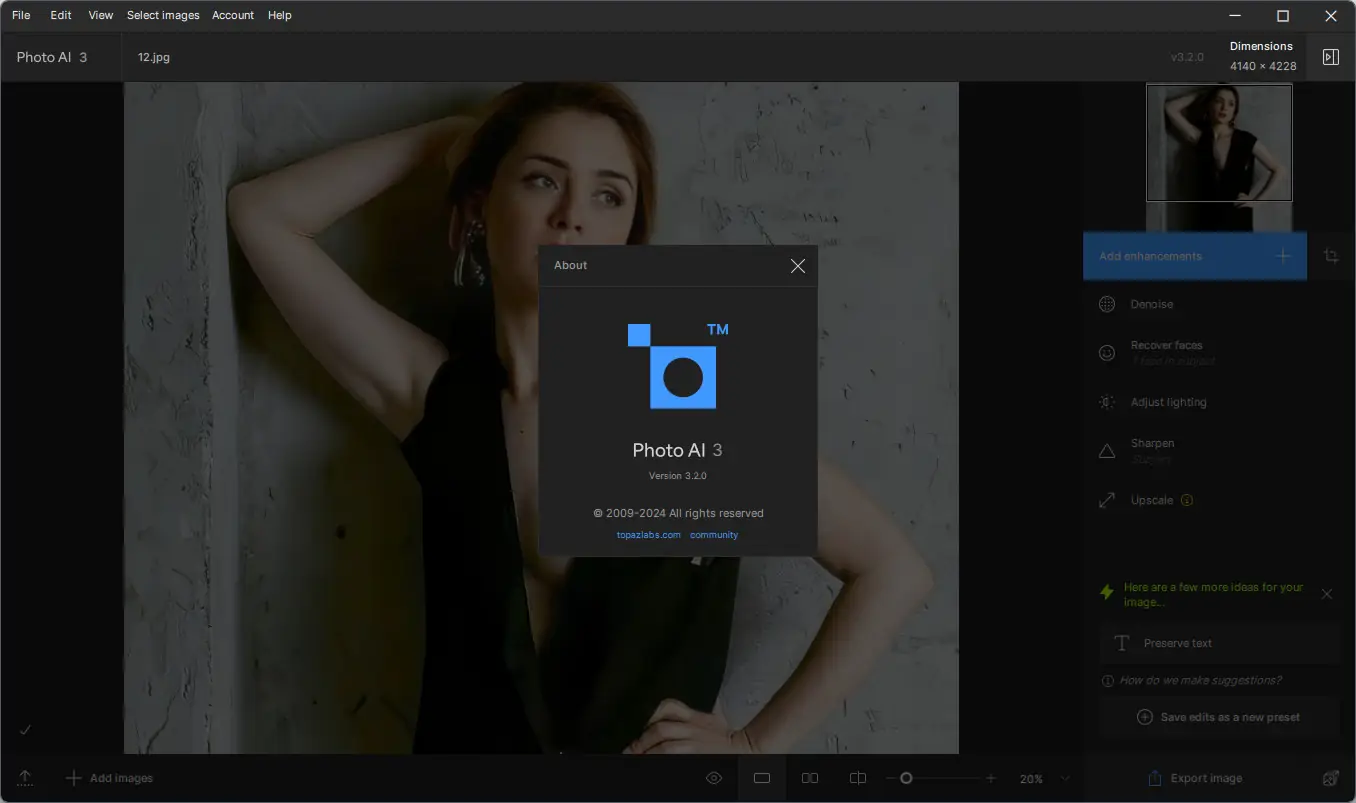 Topaz Photo AI представляет собой интегрированное решение для обработки цифровых изображений, основанное на передовых алгоритмах машинного обучения. Программа сочетает в себе возможности нескольких специализированных продуктов от Topaz Labs, включая утилиты для шумоподавления, коррекции размытости и увеличения разрешения. Благодаря этому достигается высокая степень автоматизации, позволяющая эффективно работать с большим объёмом снимков без потери качества.