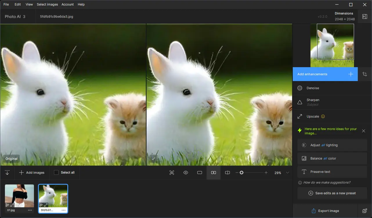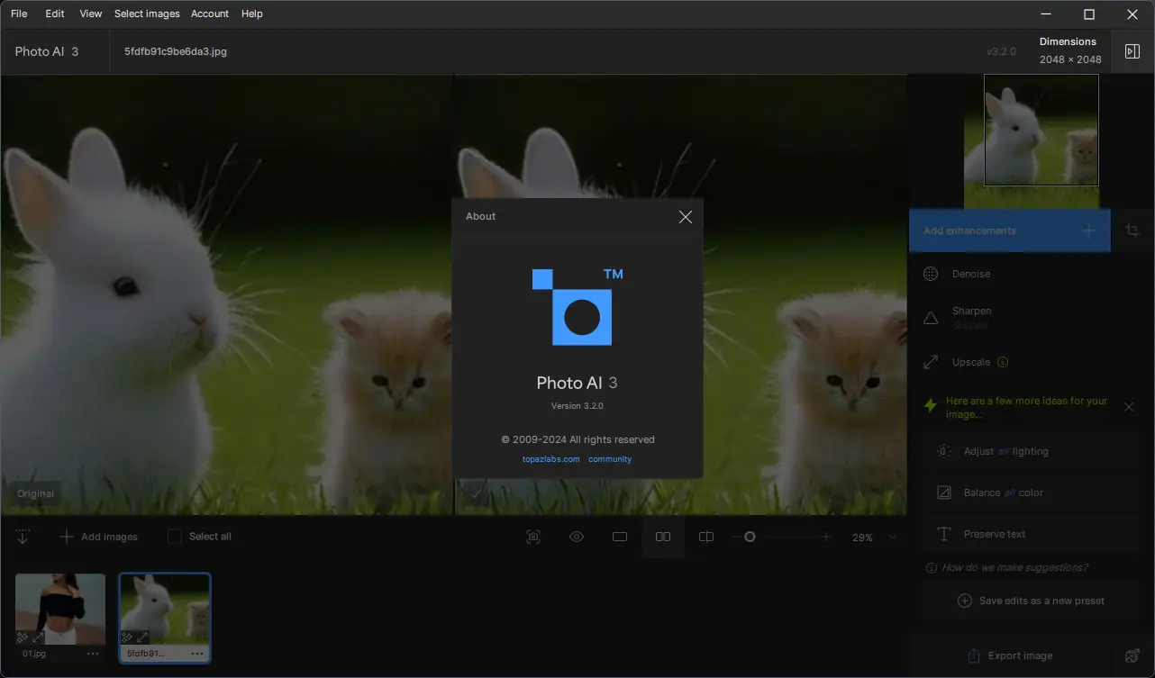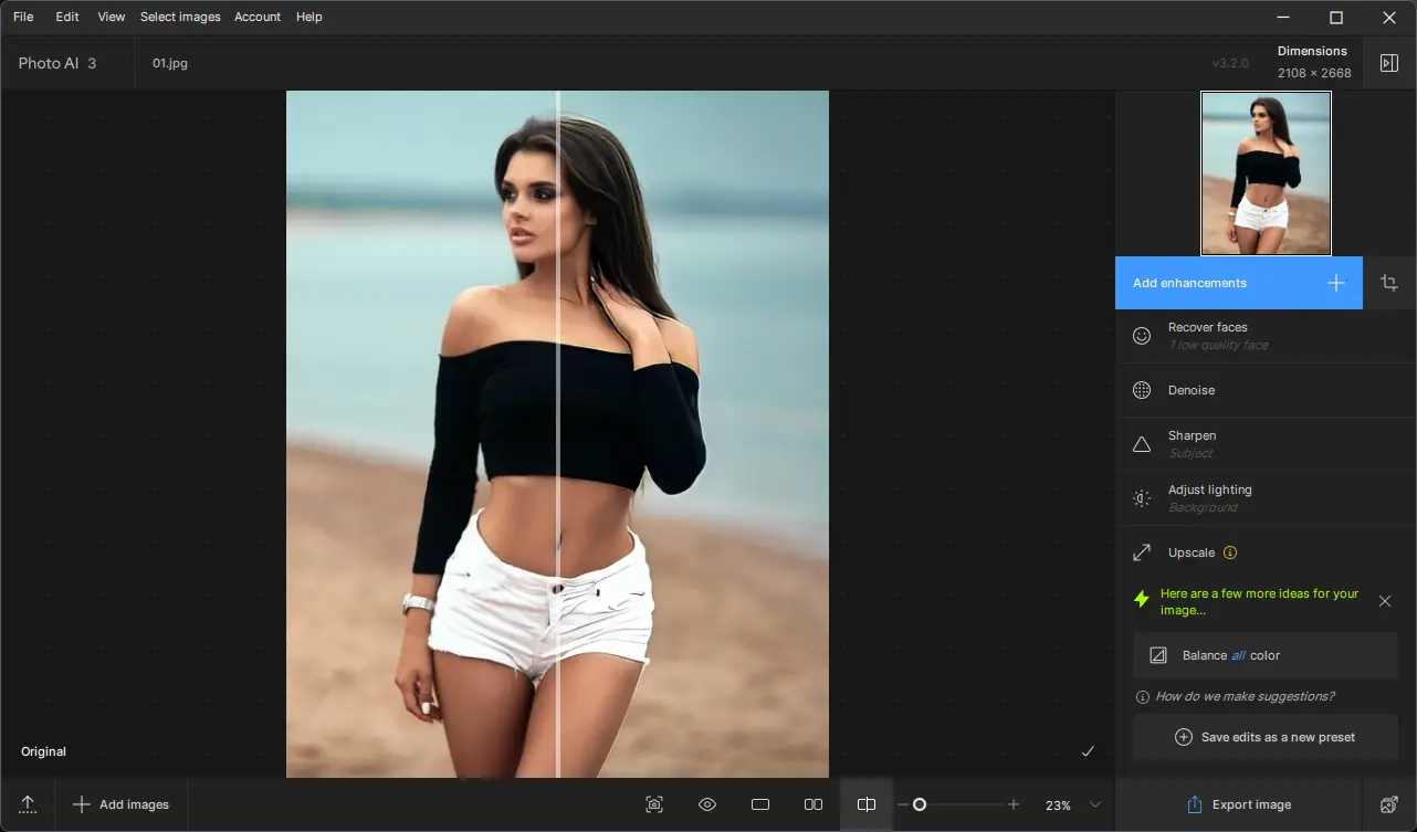 Topaz Photo AI — это программное обеспечение для автоматической обработки изображений с использованием технологий искусственного интеллекта, которое позволяет устранять шум, корректировать размытие и увеличивать разрешение фотографий без потери качества. Инструмент объединяет в себе передовые алгоритмы для повышения детализации, делая процесс редактирования проще и эффективнее. Подходит как для профессиональных фотографов, так и для любителей, стремящихся улучшить визуальную составляющую своих снимков.