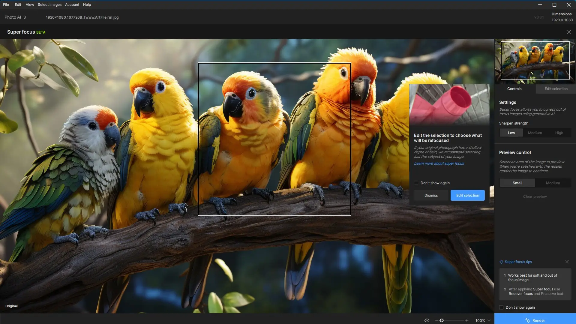 - Интеграция функций Denoise AI, Sharpen AI и Gigapixel AI