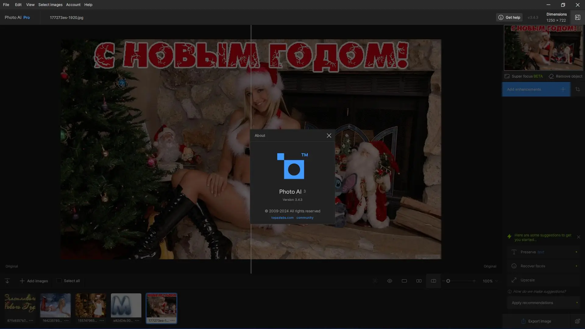 Topaz Photo AI — программное обеспечение на базе искусственного интеллекта, предназначенное для автоматического улучшения фотографий: устранения шума, повышения резкости и увеличения разрешения без потери деталей. Инструмент объединяет передовые технологии обработки изображений в едином интерфейсе, позволяя добиваться профессионального результата за минимальное время. Подходит как для новичков, так и для опытных фотографов, стремящихся оптимизировать рабочий процесс.