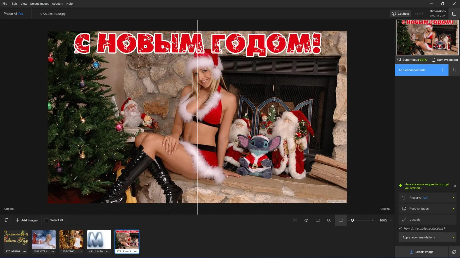 - Увеличение разрешения изображений в несколько раз без появления артефактов или размытости краёв