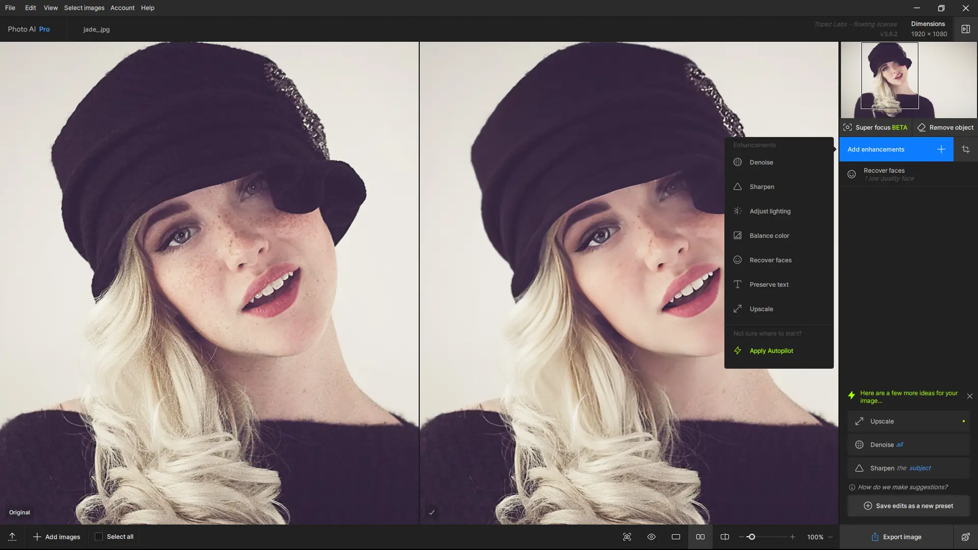 Использование программы начинается с импорта изображения в интерфейс приложения. Система сразу запускает анализ через функцию autopilot, выявляя потенциальные проблемы — шум, размытость, низкое разрешение. Пользователь может принять автоматические рекомендации или перейти в ручной режим, где доступны слайдеры для точной настройки интенсивности шумоподавления, фокусировки и масштабирования. После предварительного просмотра результатов файл экспортируется в выбранном формате, готовый к дальнейшей обработке или публикации. Интерфейс интуитивно понятен, а встроенное обучение помогает новичкам быстро освоить основные функции.