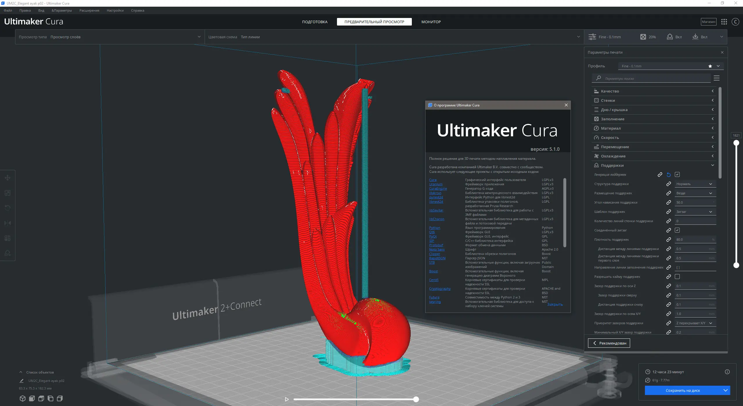 Ultimaker Cura сочетает в себе простоту использования и глубокие возможности настройки, что делает её одним из лидеров среди слайсеров.