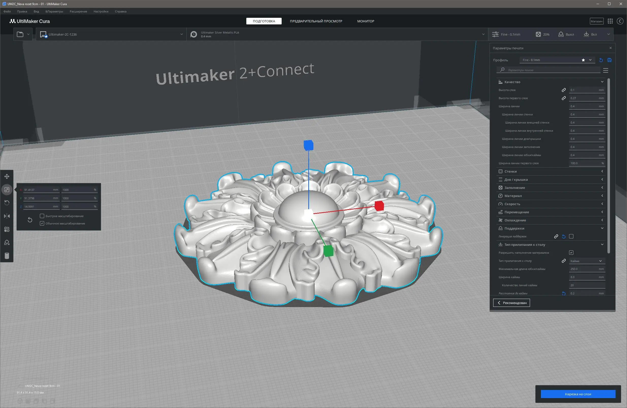 Ultimaker Cura — это свободно распространяемый слайсер для 3D-печати, разработанный для точной подготовки цифровых моделей к печати на принтере. Программа совмещает в себе интуитивный интерфейс и широкие возможности настройки, подходит как новичкам, так и профессионалам. Поддержка множества форматов и оптимизация под различные типы оборудования делают её универсальным решением для работы с 3D-моделями.