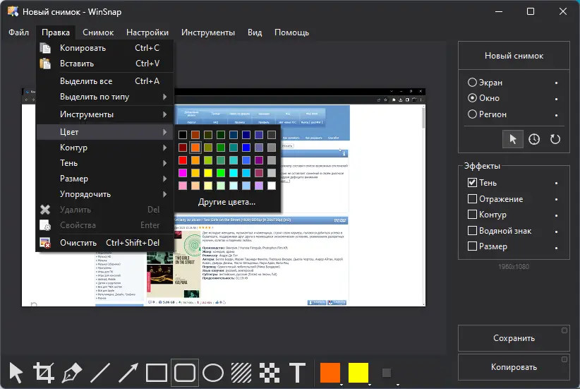 WinSnap — это компактное приложение для создания и обработки скриншотов с возможностью тонкой настройки интерфейса и эффектов. Программа поддерживает захват окон, областей, всего экрана и даже прозрачных элементов с последующим редактированием. С её помощью можно быстро подготовить изображение к публикации или архивации.