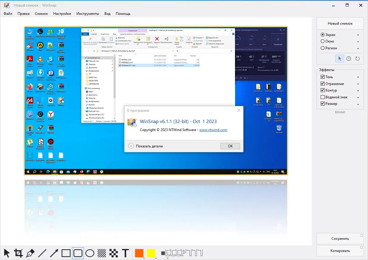 WinSnap — это компактное приложение для создания и обработки скриншотов с поддержкой нестандартных окон и расширенными возможностями редактирования. Программа позволяет быстро захватывать изображения с экрана, применять графические эффекты и сохранять результат в популярных форматах. Подходит как для повседневного использования, так и для подготовки визуальных материалов.