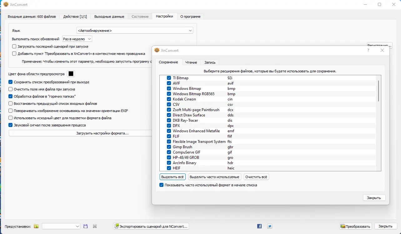 - Широкая поддержка графических форматов и глубокая настройка обработки.
