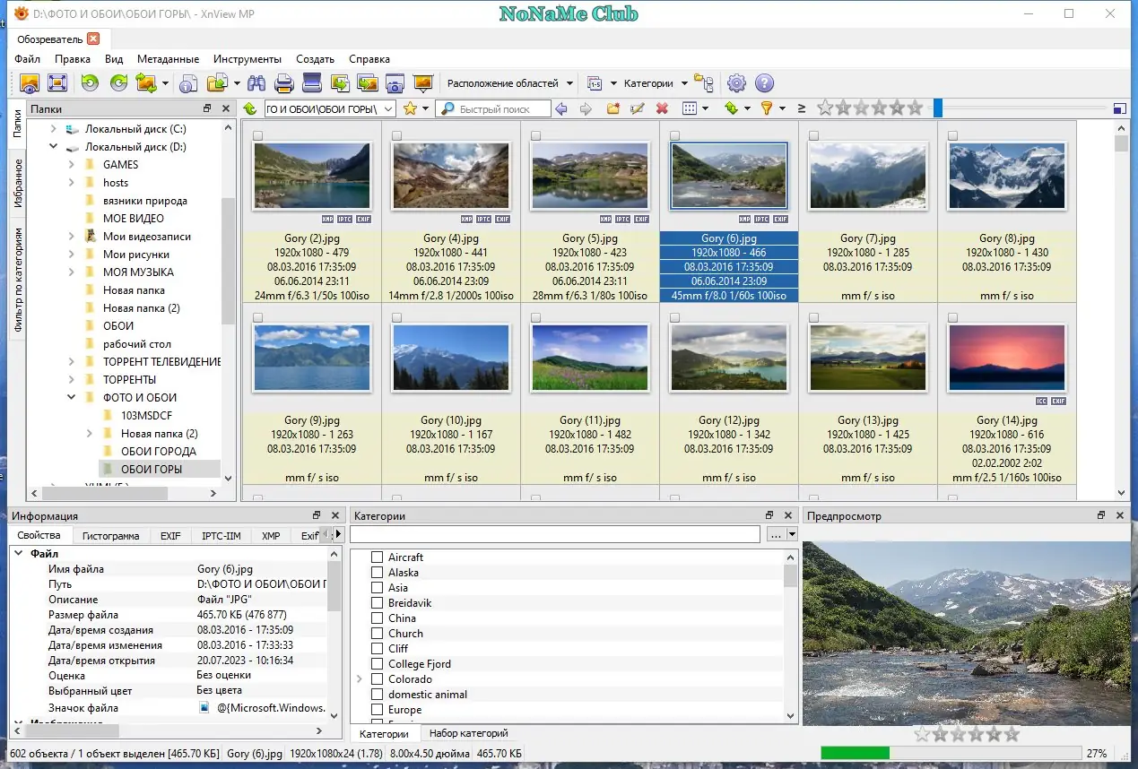 XnViewMP — это универсальный инструмент для просмотра, конвертации и управления графическими файлами, поддерживающий более 500 форматов. Программа сочетает в себе функции медиабраузера, редактора изображений и каталогизатора, обеспечивая удобную работу с фото и графикой. Интерфейс приложения выполнен в стиле проводника Windows, что упрощает навигацию и быстрый доступ к файлам.
