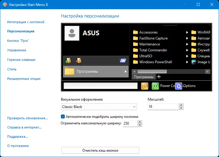 - Гибкая настройка внешнего вида и поведения меню под индивидуальные предпочтения.