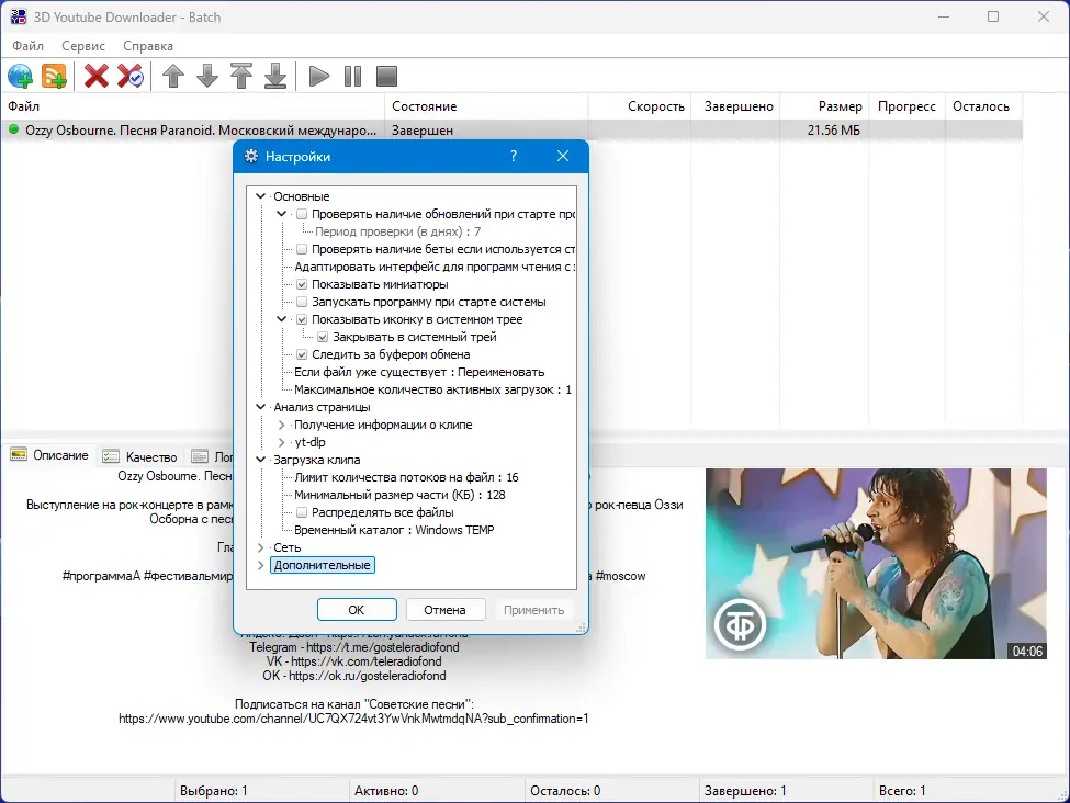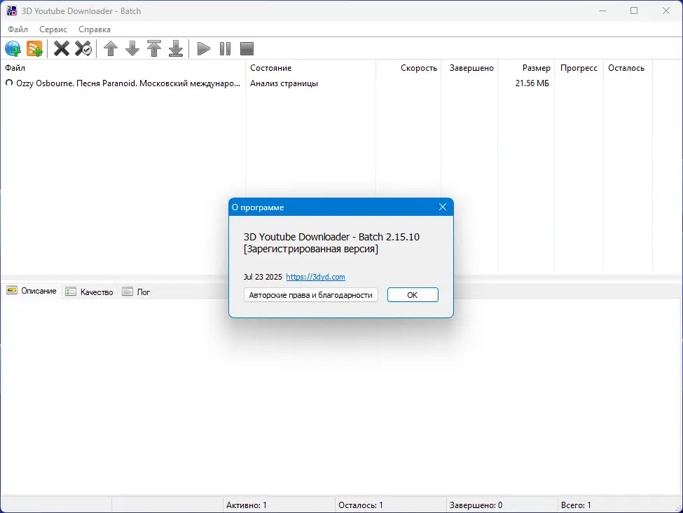 3D Youtube Downloader Batch — мощное приложение для массовой загрузки видео с YouTube и других популярных платформ. Программа поддерживает пакетную обработку, конвертацию в различные форматы и автоматическое копирование ссылок из буфера обмена, обеспечивая высокую скорость и удобство при работе с большими объёмами контента.
