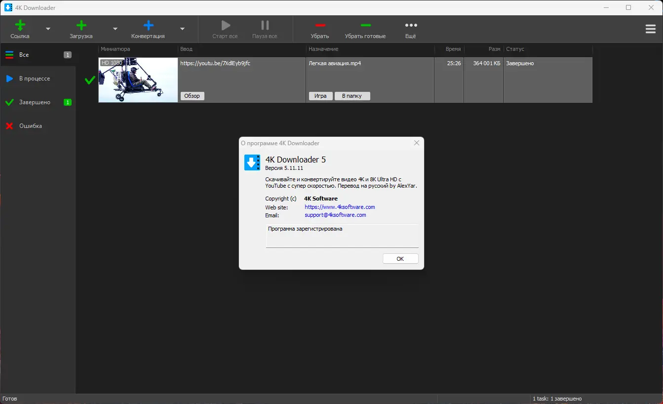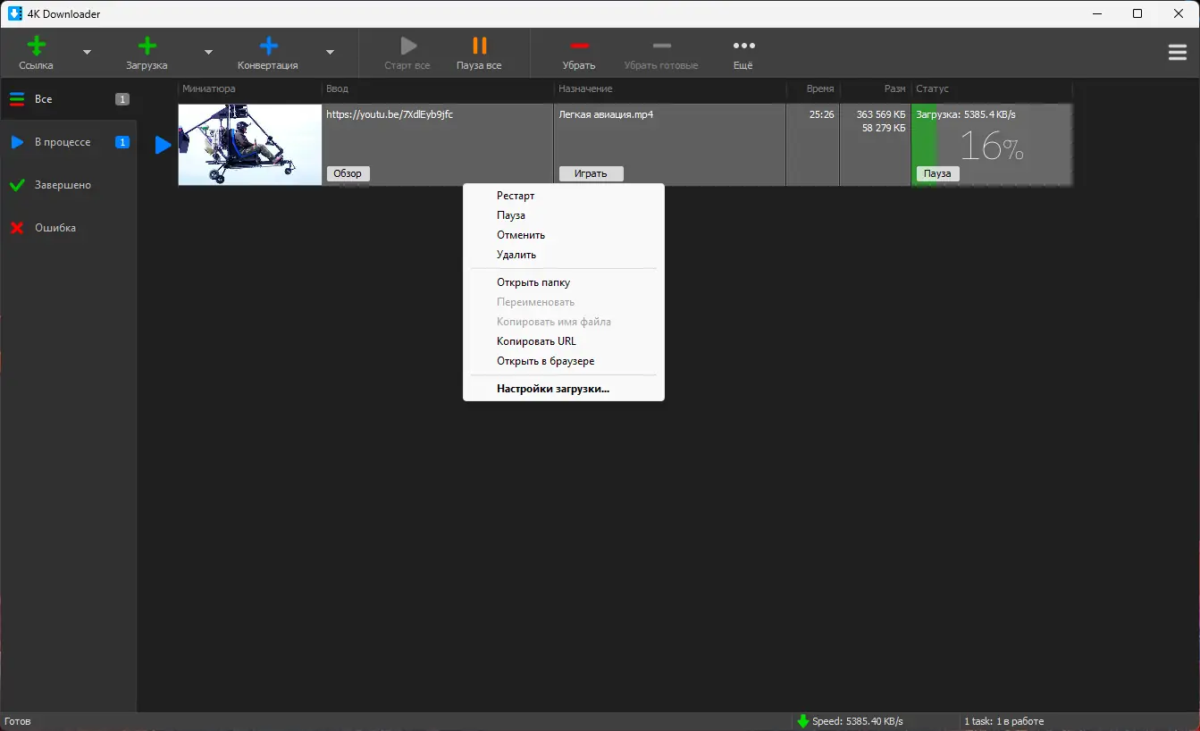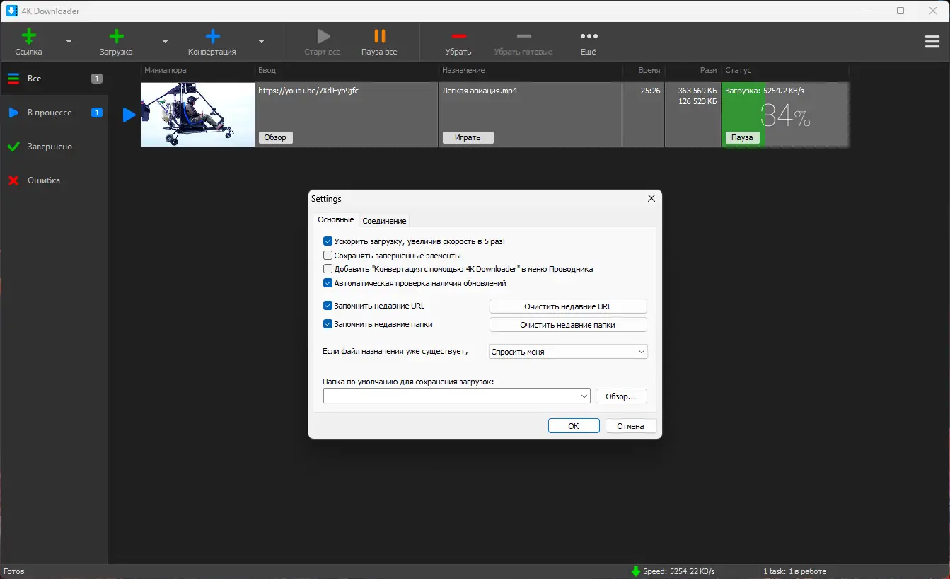 Использование приложения не требует сложных настроек. После запуска достаточно скопировать ссылку на видео из браузера, и программа автоматически предложит варианты загрузки. Пользователь может выбрать разрешение, формат (MP4, MKV, MOV и другие), а также указать, нужно ли сохранить только звук. Для массовой загрузки поддерживаются плейлисты и каналы. Задачи можно ставить в очередь, чтобы не перегружать систему. После завершения загрузки файлы доступны для просмотра через встроенный плеер или внешние приложения.
