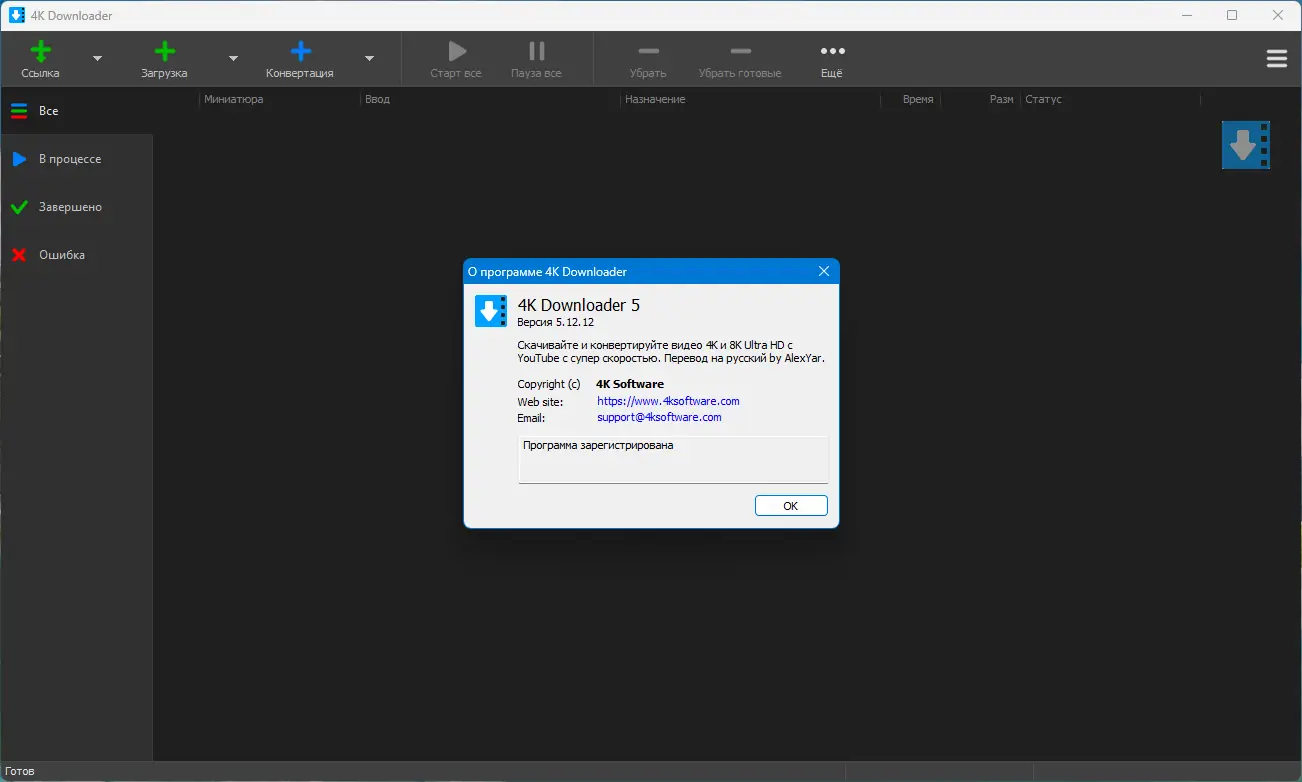 Программа предназначена для сохранения видеоконтента с веб-платформ в высоком качестве, включая разрешение 4K и выше. Она автоматически распознаёт скопированную ссылку и предлагает варианты загрузки с выбором формата и качества. Поддерживаются как отдельные видео, так и целые плейлисты, что делает процесс массового сохранения контента максимально удобным.