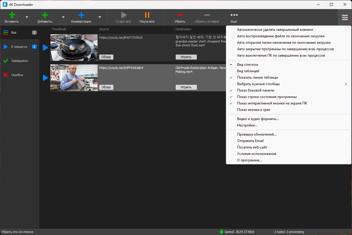 Использование приложения не требует технических знаний. После запуска достаточно скопировать URL нужного видео или плейлиста из браузера — 4K Downloader автоматически предложит начать загрузку. Пользователь может выбрать разрешение, формат (MP4, MOV, AVI и другие), а также указать, требуется ли только аудио в формате MP3. Поддерживаются как одиночные, так и групповые операции, включая очереди задач.