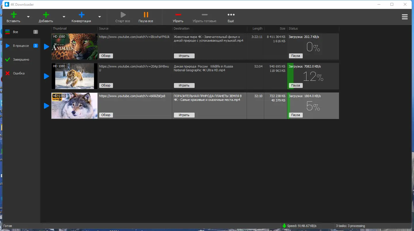 4K Downloader — это приложение для загрузки видео с YouTube, Dailymotion и других платформ в высоком и сверхвысоком разрешении, включая 4K и 8K. Программа поддерживает сохранение как полного видео, так и аудиодорожки отдельно, работает с плейлистами и предлагает гибкие настройки экспорта. Интерфейс интуитивно понятен, а процесс скачивания автоматизирован за счёт распознавания скопированных ссылок.