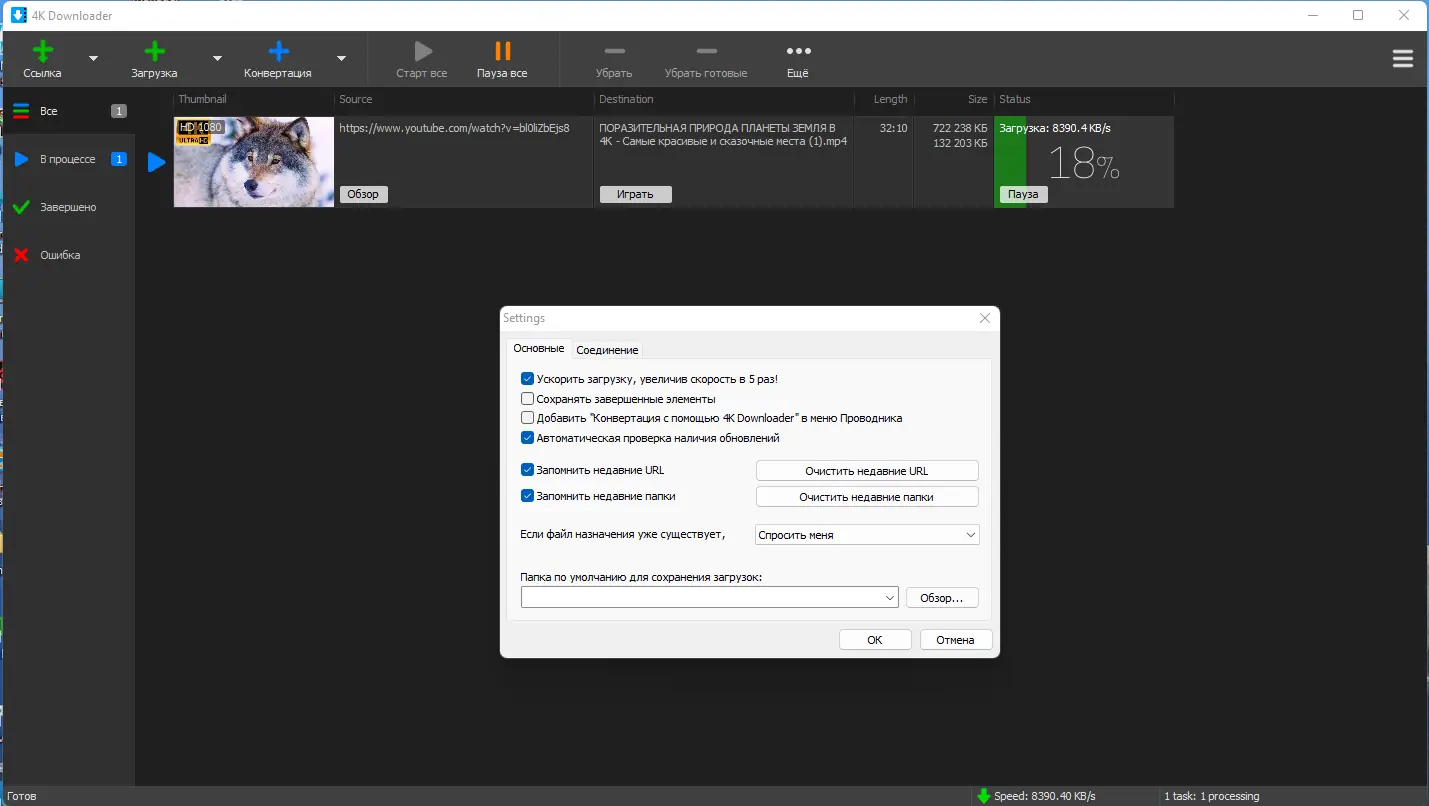 4K Downloader позволяет сохранять видео с интернет-ресурсов на локальное устройство для последующего просмотра без подключения к сети. Приложение поддерживает широкий диапазон разрешений — от240p до8K при60 кадрах в секунду, что делает его подходящим как для повседневного использования, так и для профессионалов, которым важно качество контента. Программа распознаёт буфер обмена, автоматически подставляя скопированную ссылку, что ускоряет процесс инициализации загрузки.