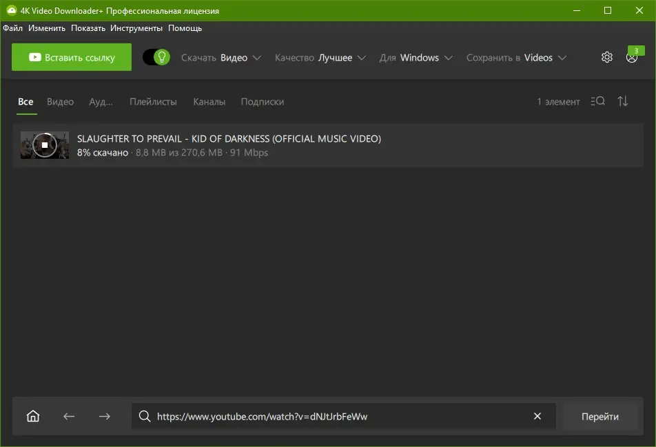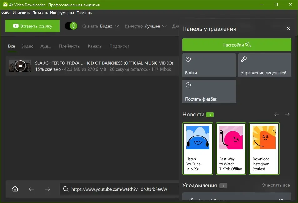 Использование приложения предельно простое: скопируйте ссылку на видео или плейлист и вставьте её в окно программы. После анализа контента появится список доступных форматов и разрешений. Выберите нужный вариант и начните загрузку. Умный режим позволяет задать предпочтительные параметры один раз — в дальнейшем программа будет автоматически применять их ко всем новым ссылкам. Для массовой загрузки можно импортировать список URL-адресов, что удобно при архивировании контента. Также доступна функция подписки на каналы с автоматическим получением новых видео.