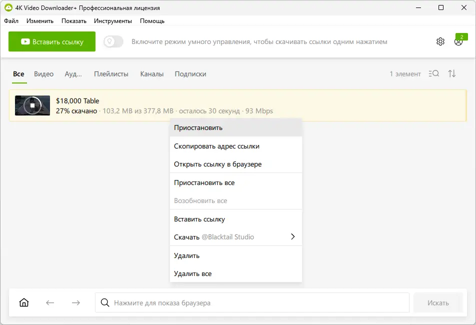 4K Video Downloader — это мощное приложение для загрузки видео, аудио и субтитров с YouTube и других популярных платформ. Программа поддерживает высокие разрешения, включая 4K и 8K, а также позволяет скачивать целые плейлисты, каналы и 360°-видео. Утилита работает на Windows, macOS и Linux, обеспечивая стабильную и быструю загрузку с удобным интерфейсом.